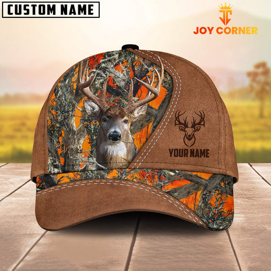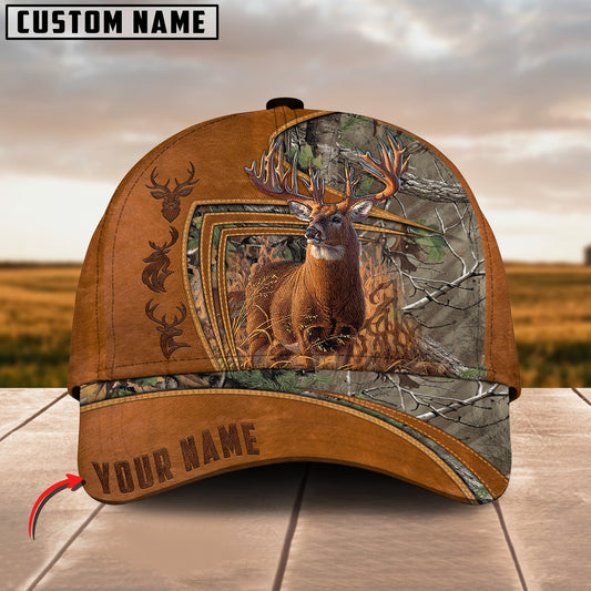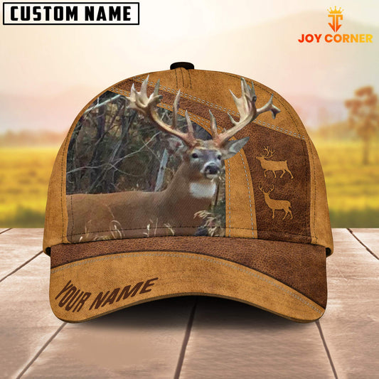 Joycorners Deer Hunting Personalized Name Brown Leather Pattern 3D Classic Cap