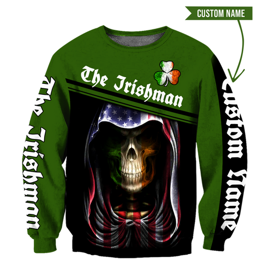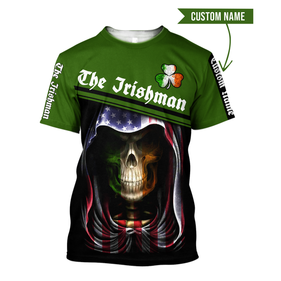 3D All Over Printed Irish Skull St Patrick Day Unisex Shirts Custom Name