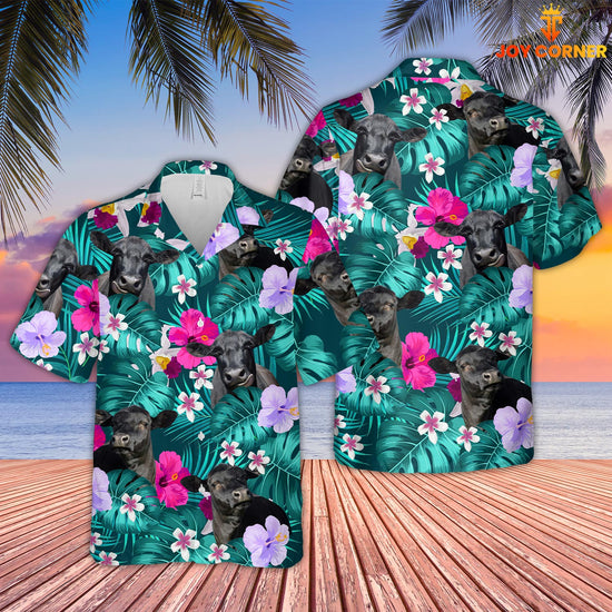 Joy Corners Black Angus Green Hibicus Tropical Pattern 3D Hawaiian Shirt