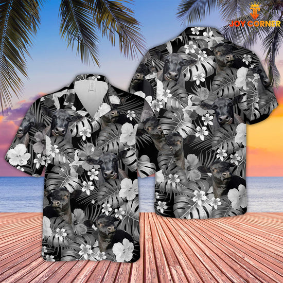 Joy Corners Black Angus Grey Hibicus Tropical Pattern 3D Hawaiian Shirt