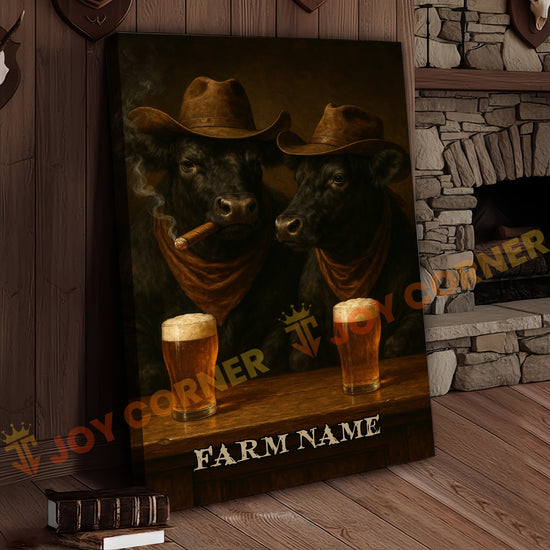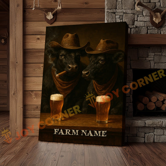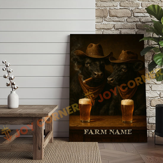 Joycorner Black Angus Cowboy Beer Bar – Personalized Farm Name 3D Wrapped Canvas