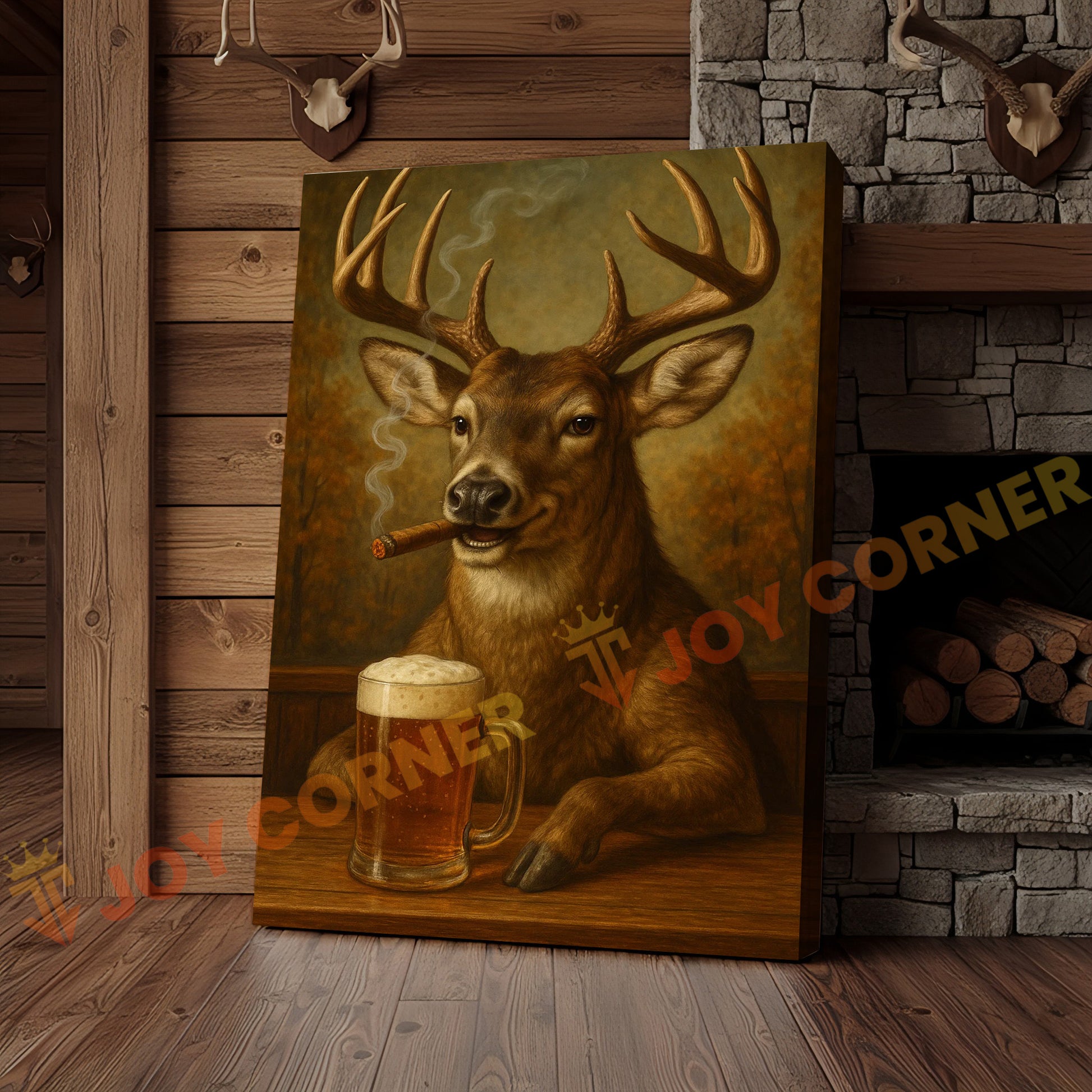 Joycorner Buck Deer Beer Cigar Rustic Portrait 3D Wrapped Canvas