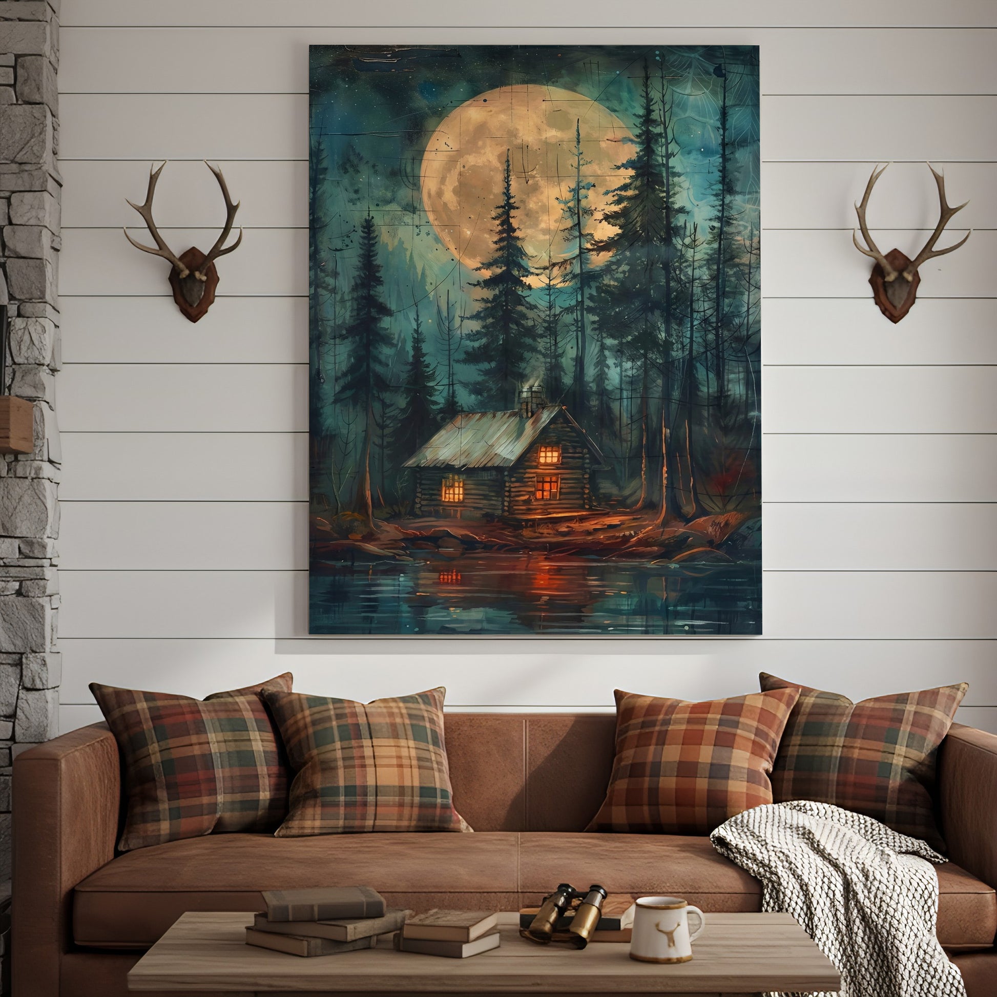 Joycorner Cabin in the Woods Full Moon Night Landscape Canvas