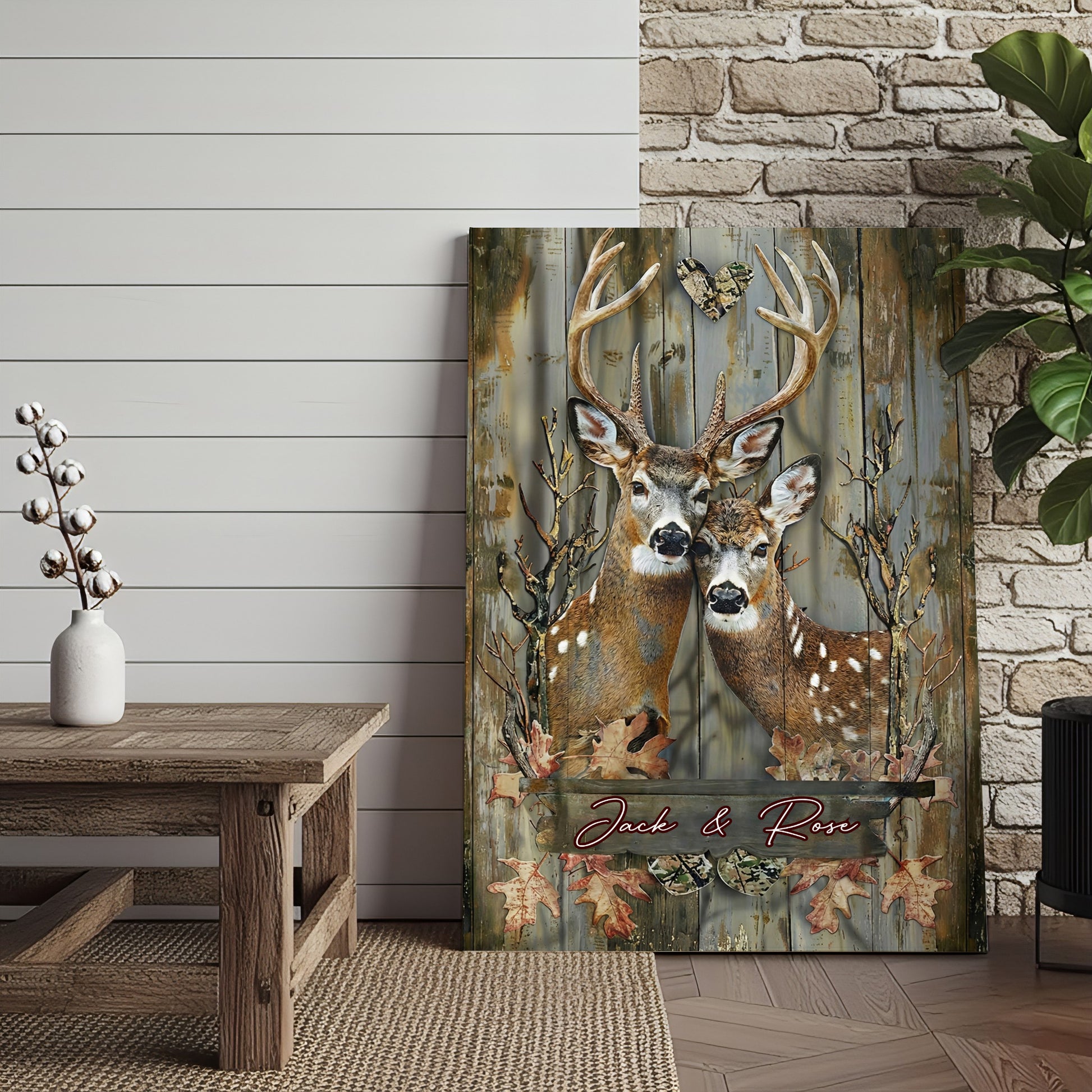Joycorner Deer Couple Rustic Wood Forest Personalized Canvas