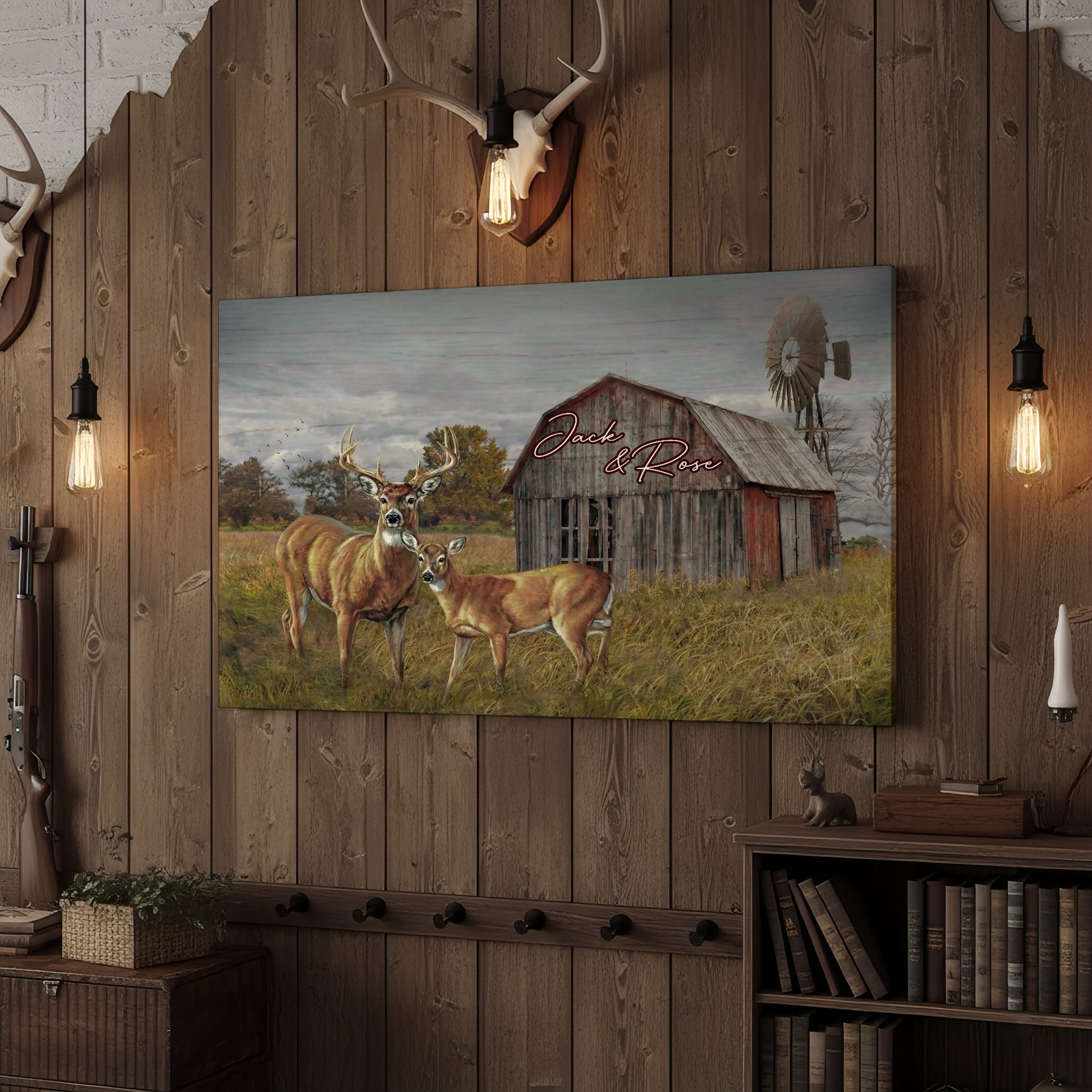 Joycorner Deer Family Farm Barn Rustic Personalized Canvas