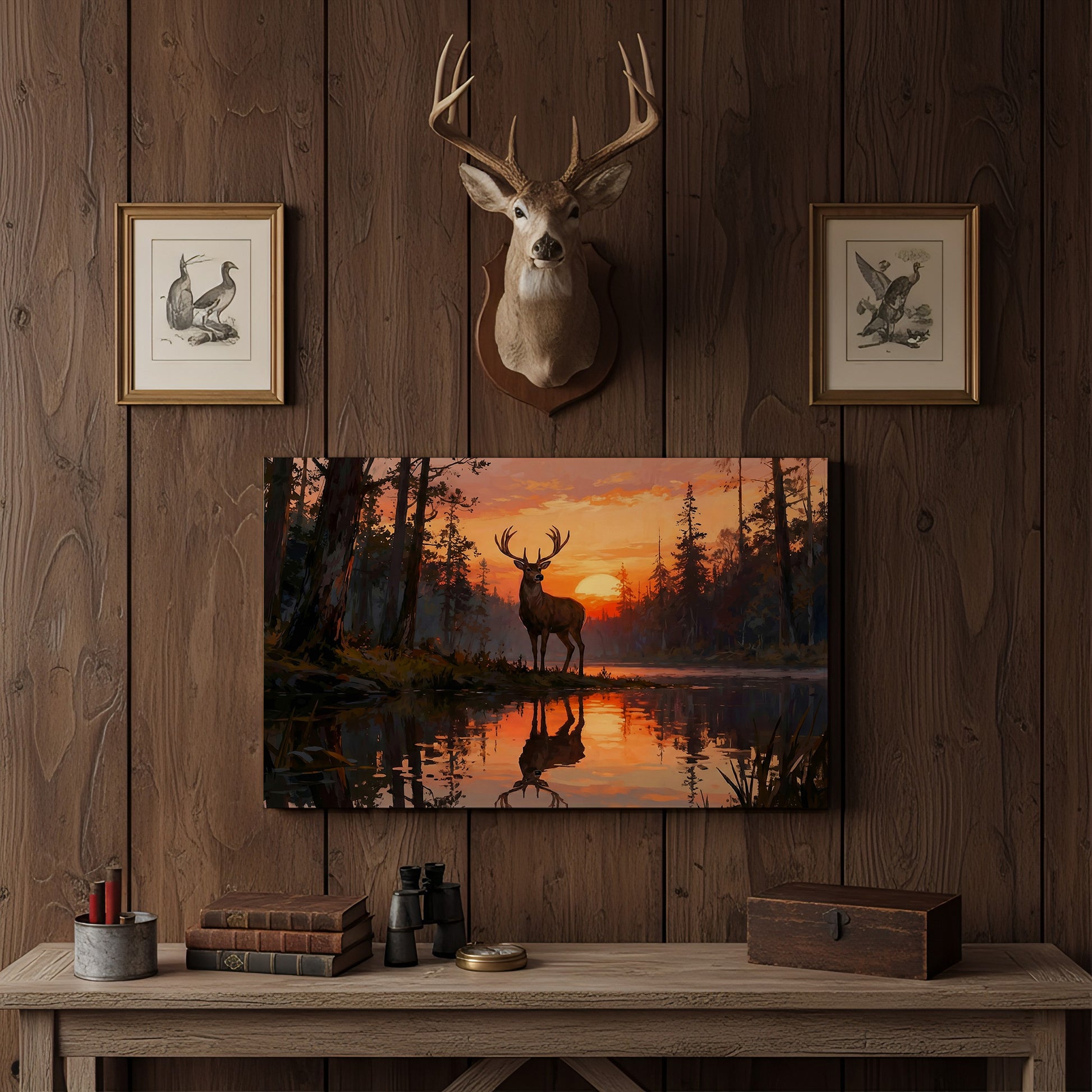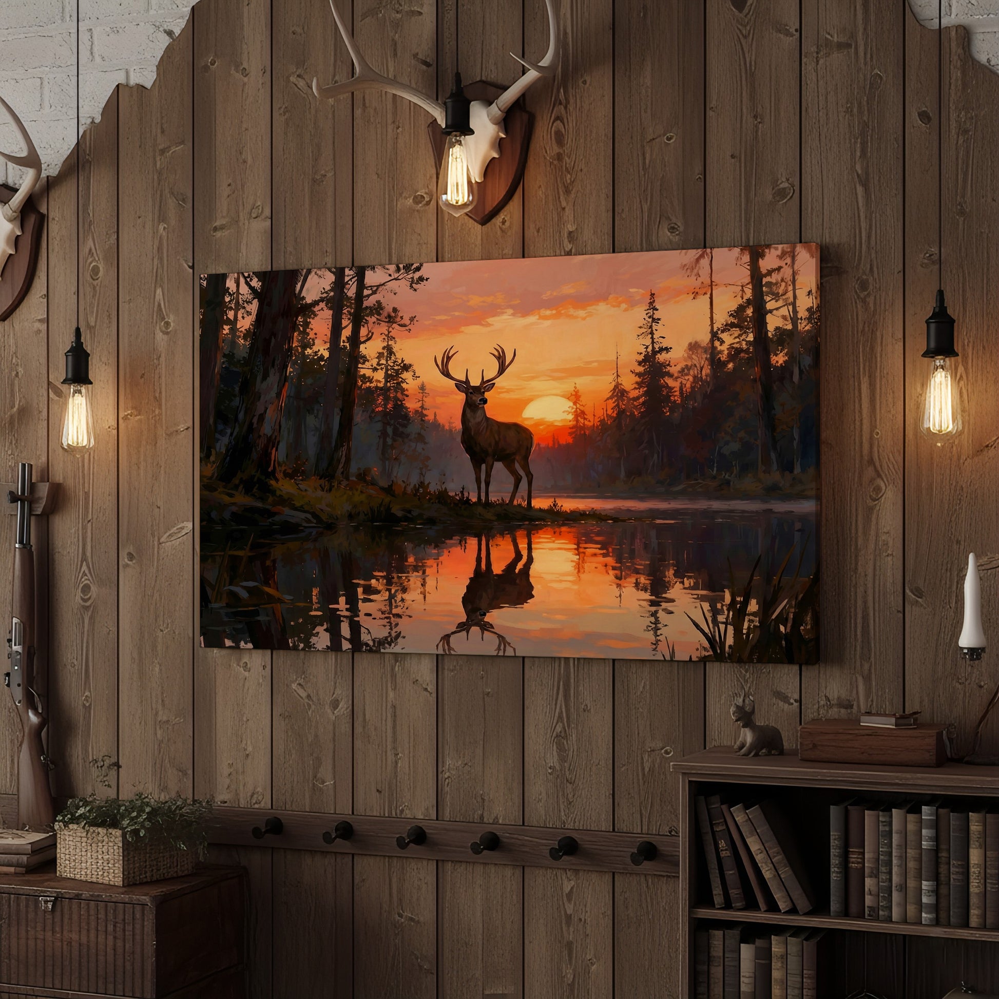 Joycorner Majestic Deer Sunset Lake Reflection Landscape Canvas