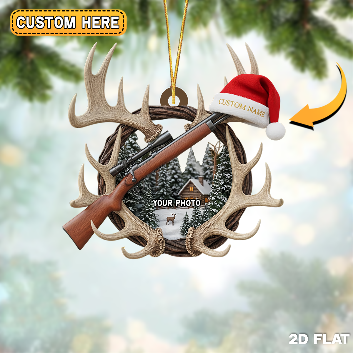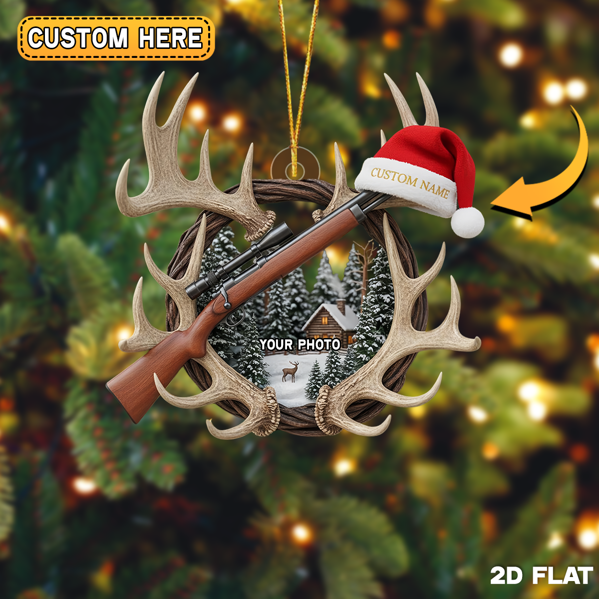 Joycorner Personalized Antler Wreath Rifle Custom Photo Ornament