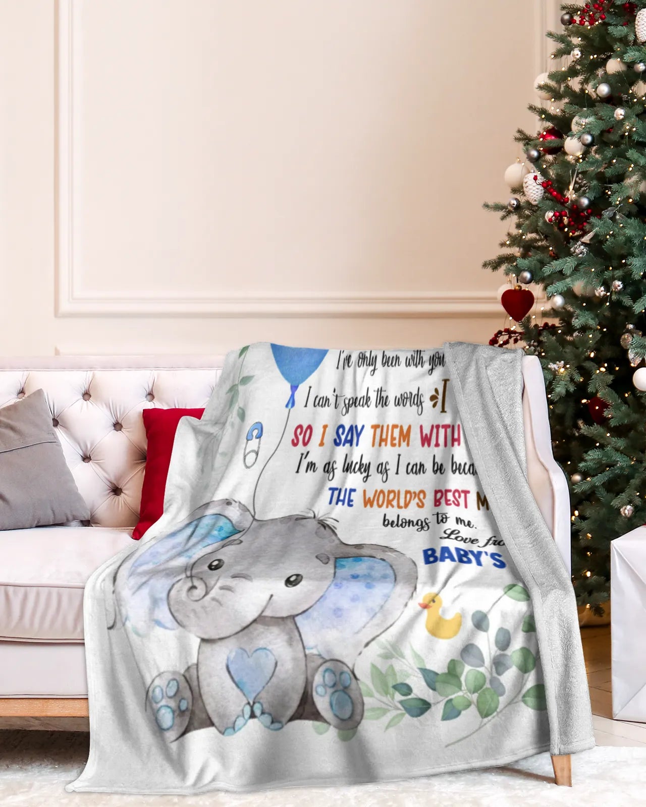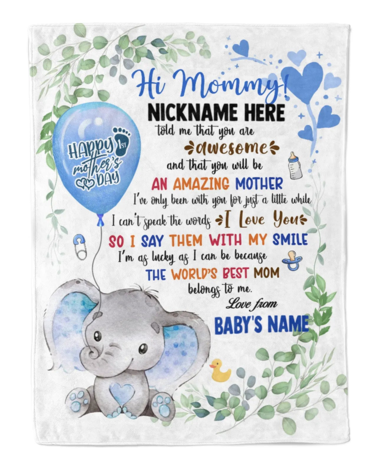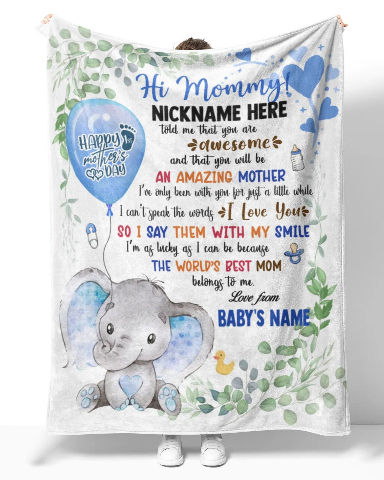 JoyCorner Personalized Printed Blanket Little Elephant With Blue Balloon - Mothers Day Gift