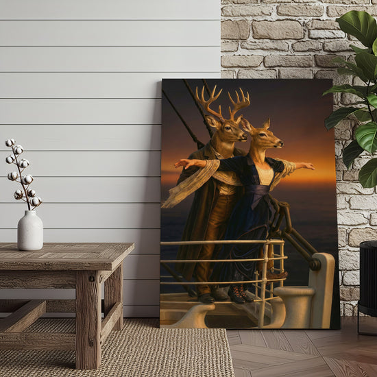 Joycorner Titanic Deer Couple Romantic Ship Sunset Canvas
