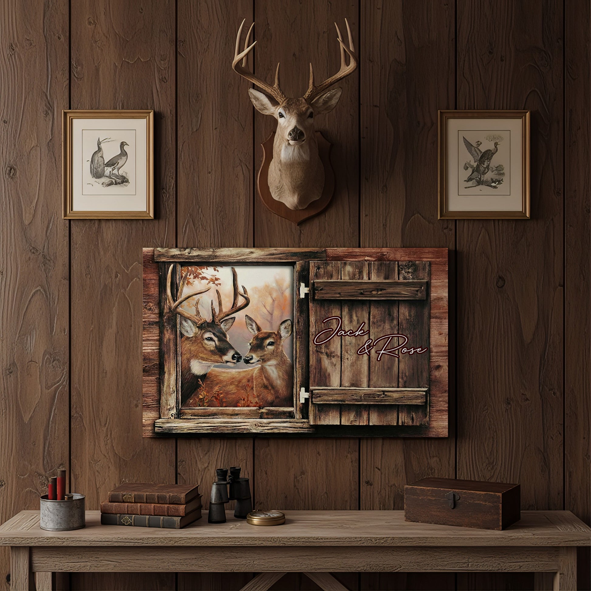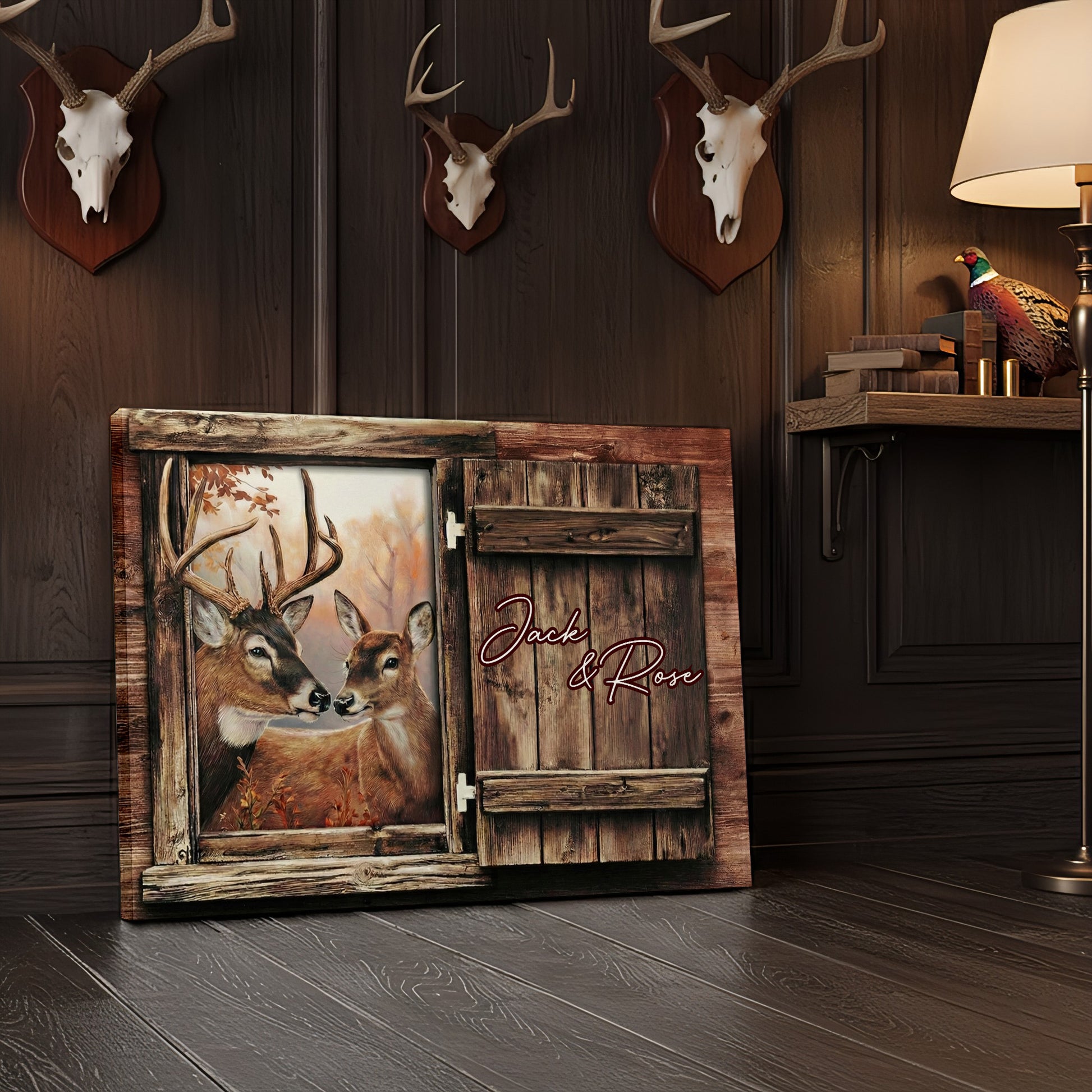 Joycorner Whitetail Deer Couple Rustic Window Personalized Canvas