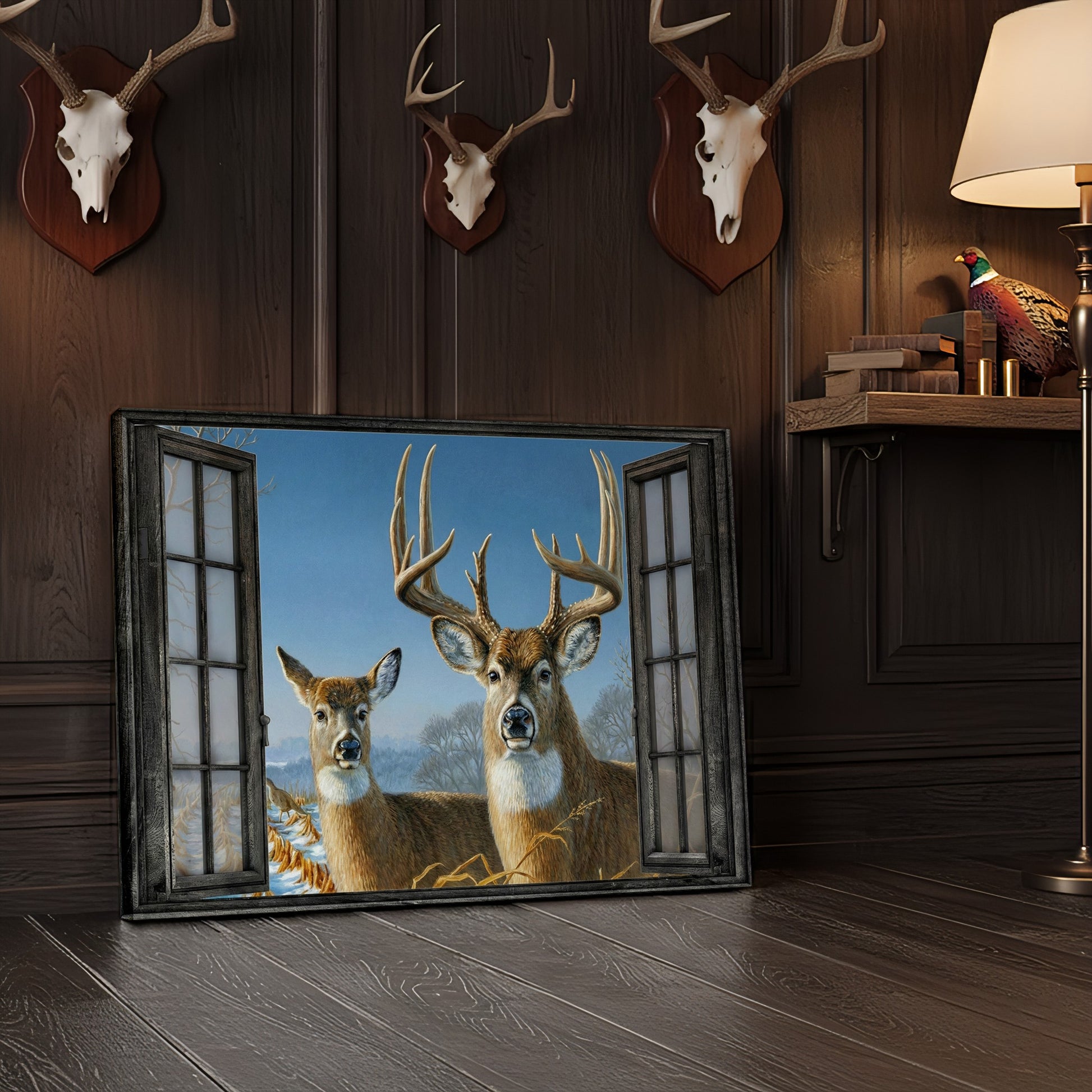 Joycorner Whitetail Deer Couple Winter Window View Canvas