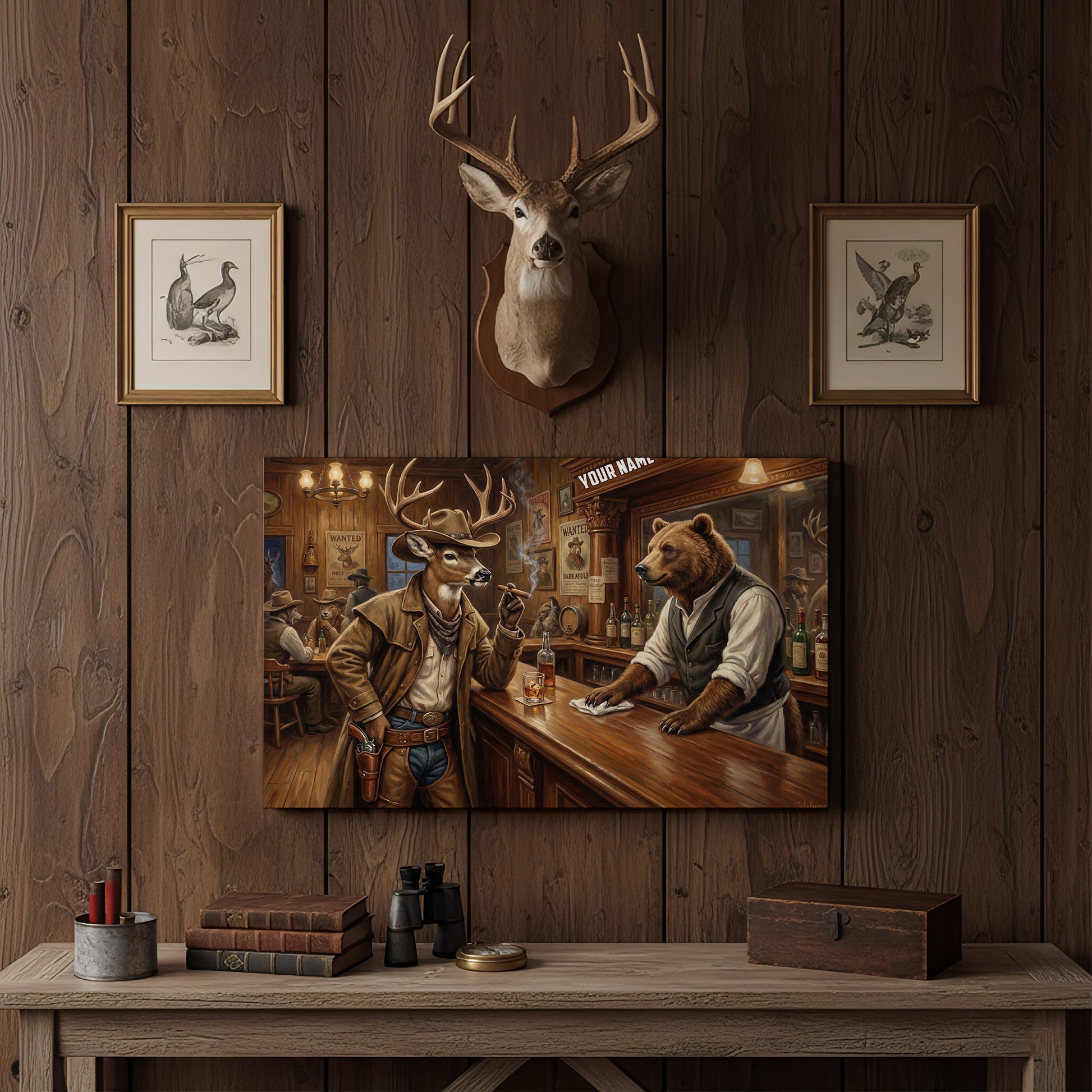 Joycorner Wild West Deer and Bear Saloon Personalized Canvas