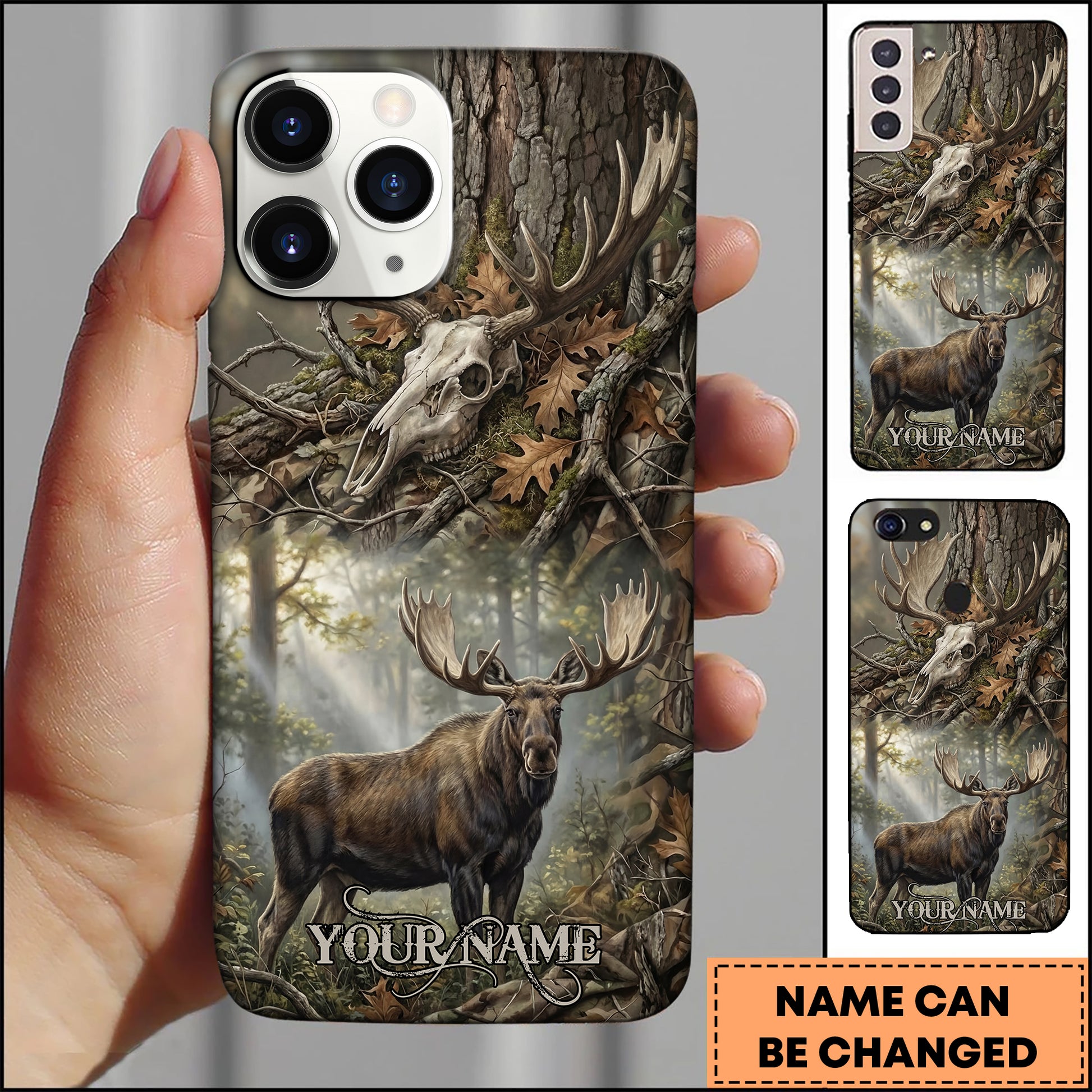 Joycorners Artist Hunting Moose Deer Skull Forest Realistic Camo Personalized Name Phone Case
