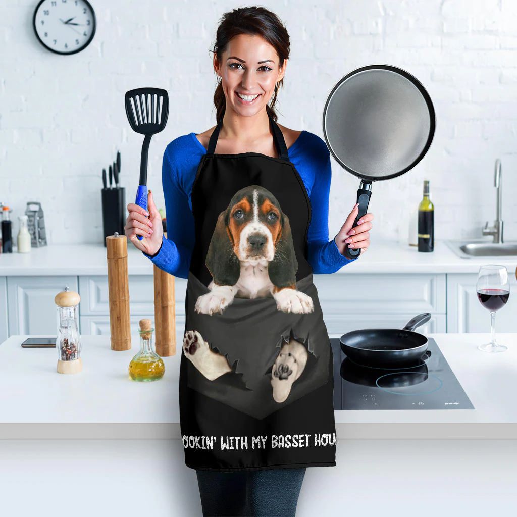 Joycorners Basset Hound In The Pocket Black All Over Printed 3D Apron