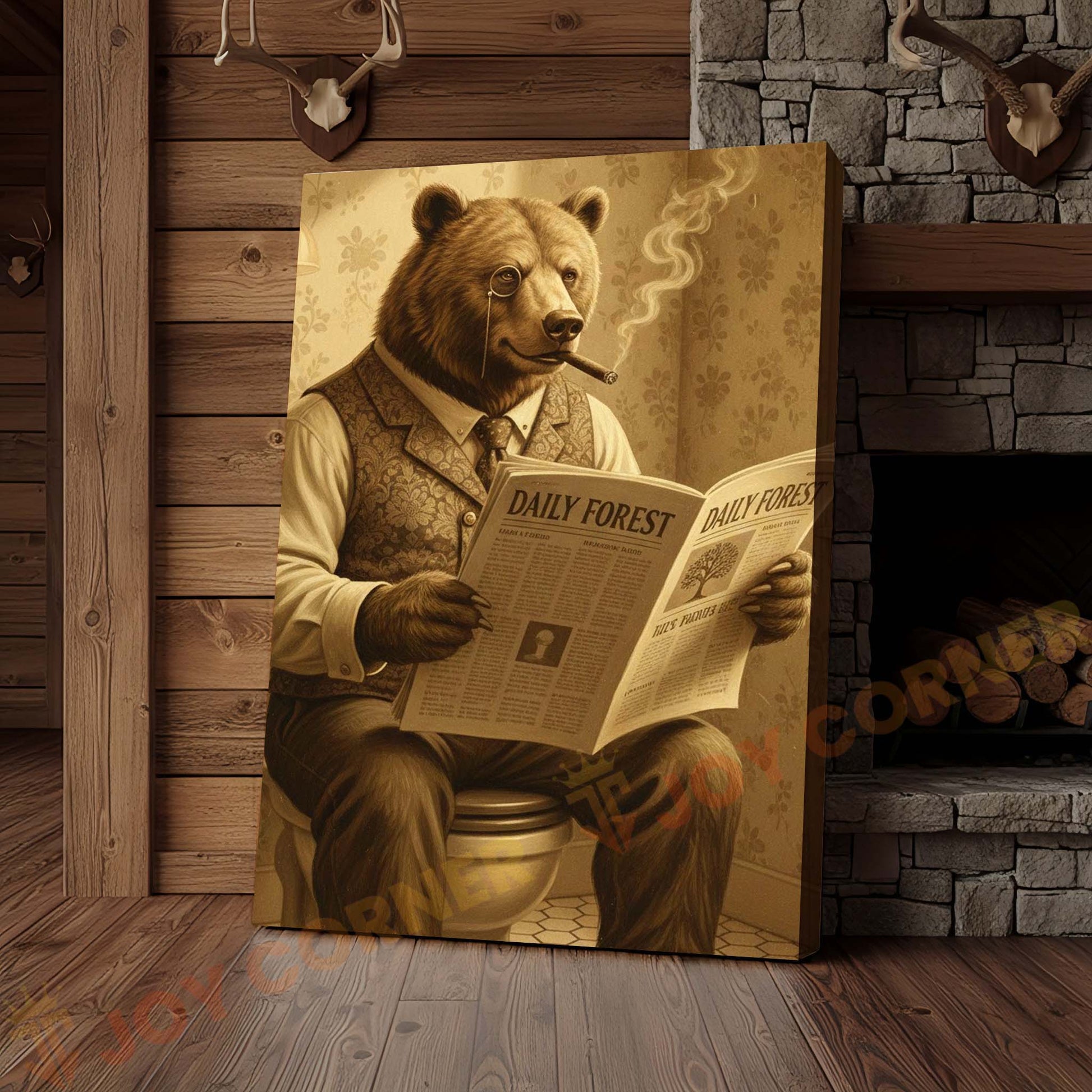 Joycorners Bear Reading Daily Forest Newspaper Wrapped Canvas