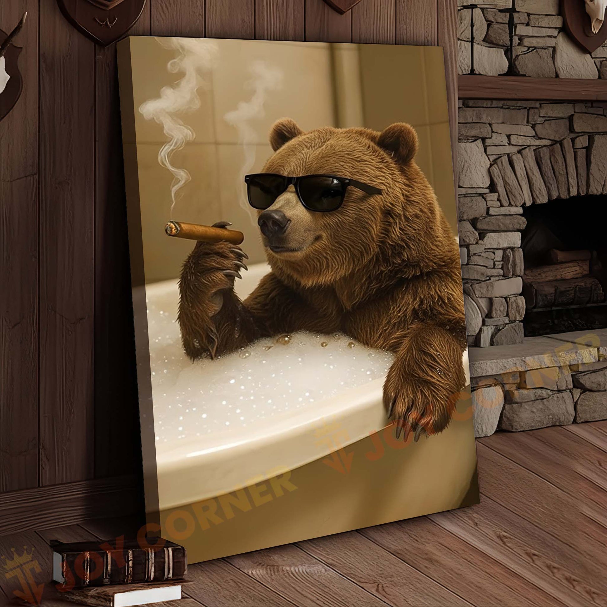 Joycorners Bear Relaxing in Bathtub with Sunglasses Wrapped Canvas