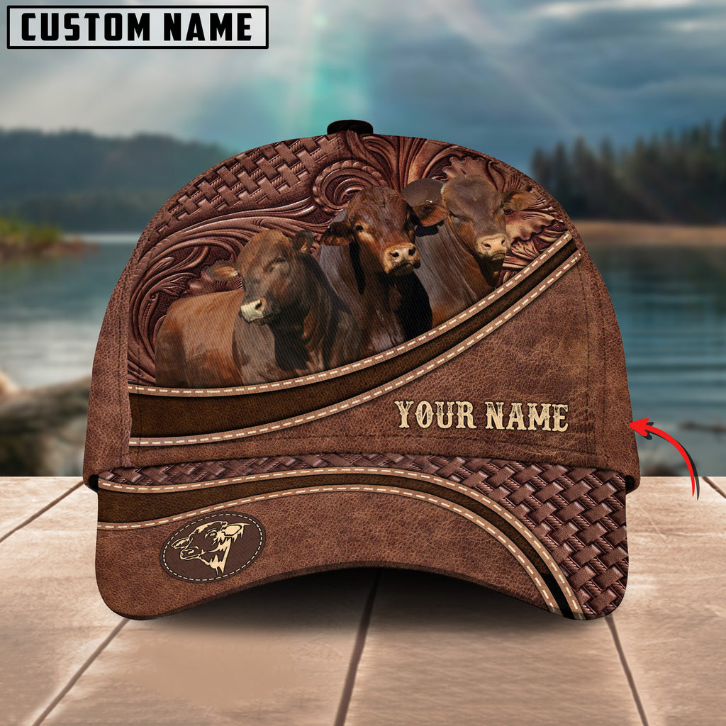 Joycorners Beefmaster Personalized Name Brown Carving Leather Pattern 3D Classic Cap