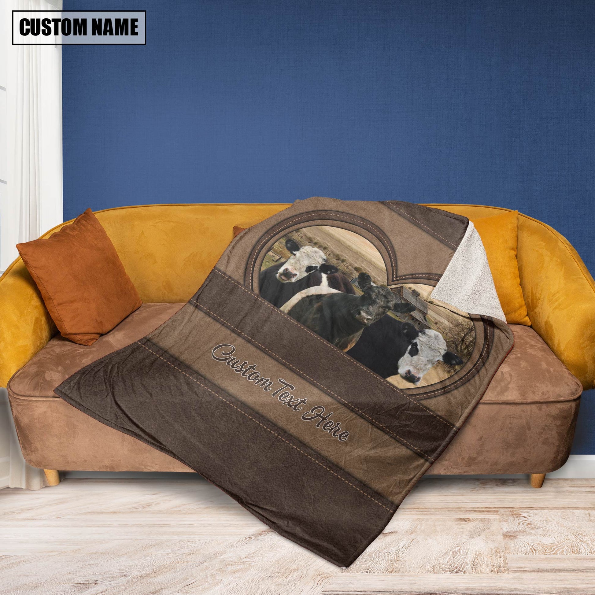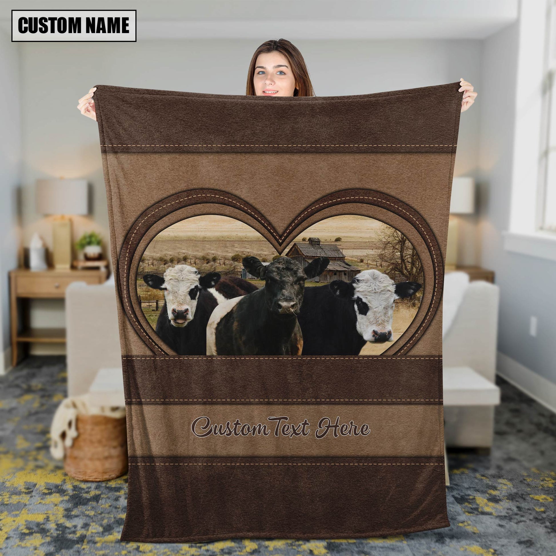 Joycorners Belted Galloway In Heart Personalized Name Blanket