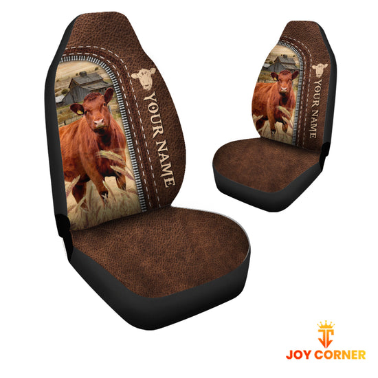 Joycorners Red Angus Personalized Name Leather Pattern Car Seat Covers Universal Fit (2Pcs)