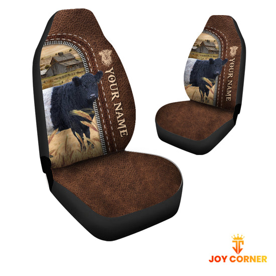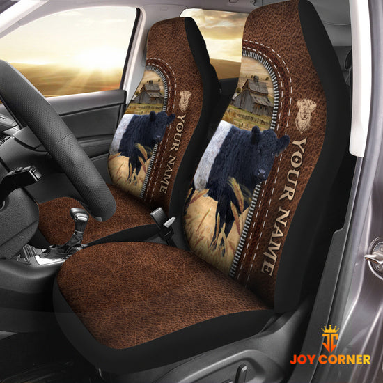 Joycorners Belted Galloway Personalized Name Leather Pattern Car Seat Covers Universal Fit (2Pcs)