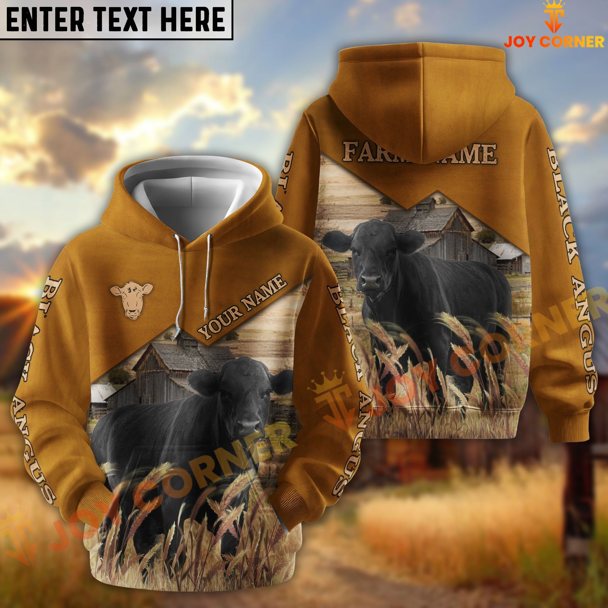 Joycorners Angus Yellow Leather Pattern Customized Name and Farm Name 3D Hoodie