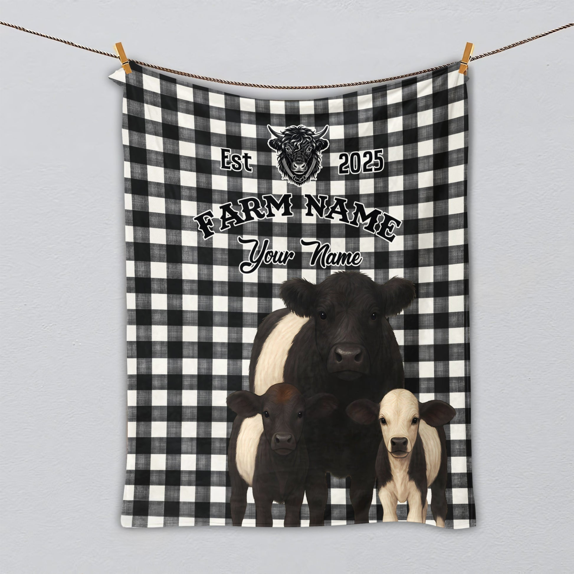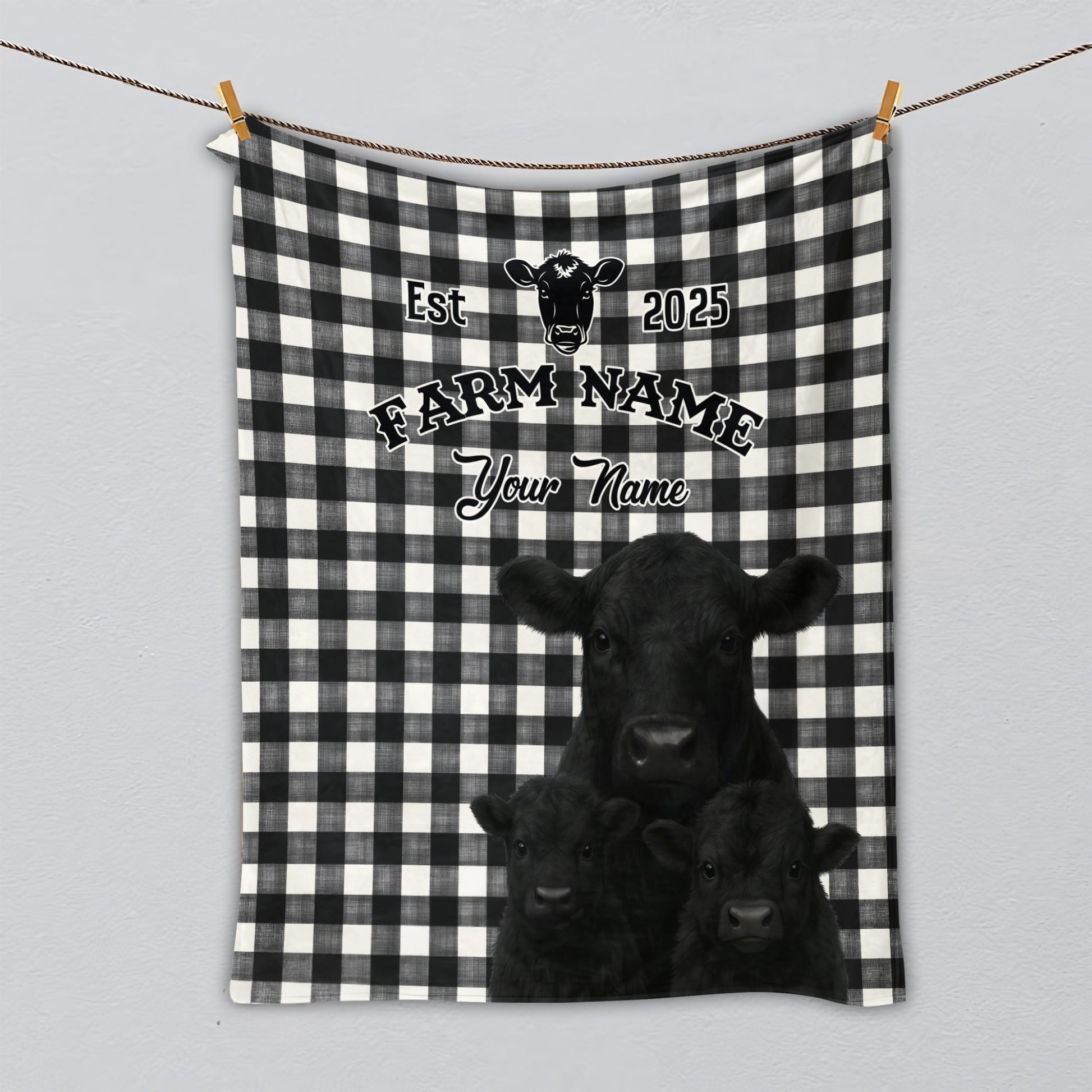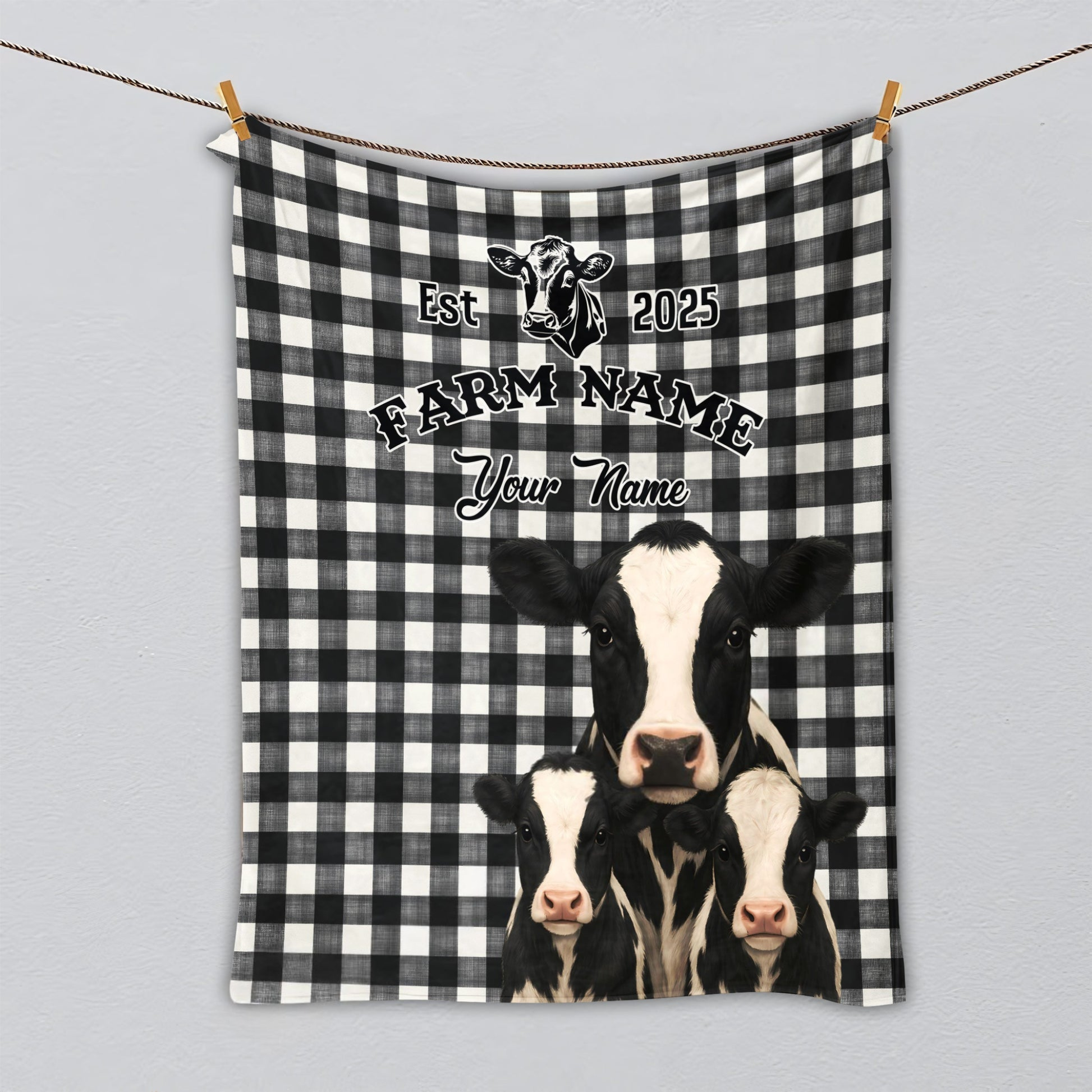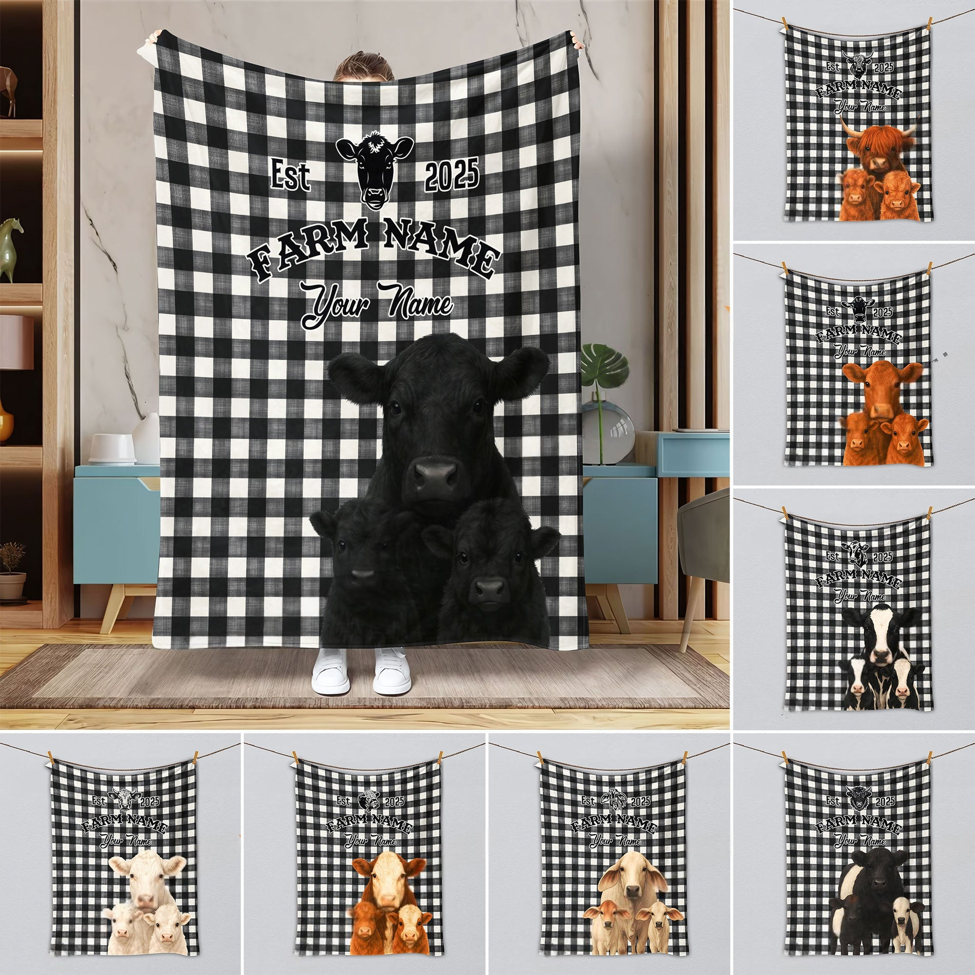 Joycorners Black And White Plaid Custom Name Farm Name Blanket