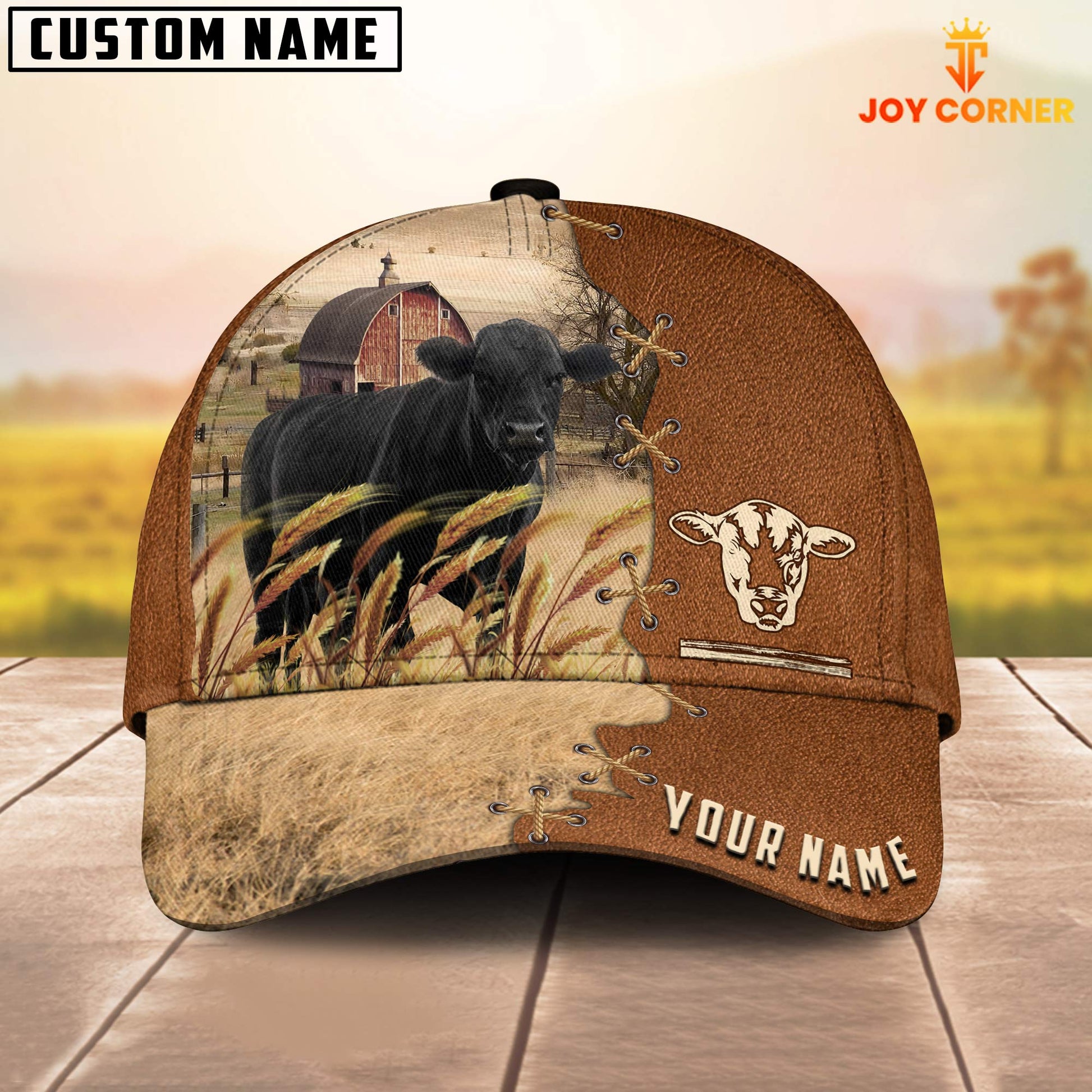 Joycorners Black Angus Custom Name Brown Leather Pattern Cap
