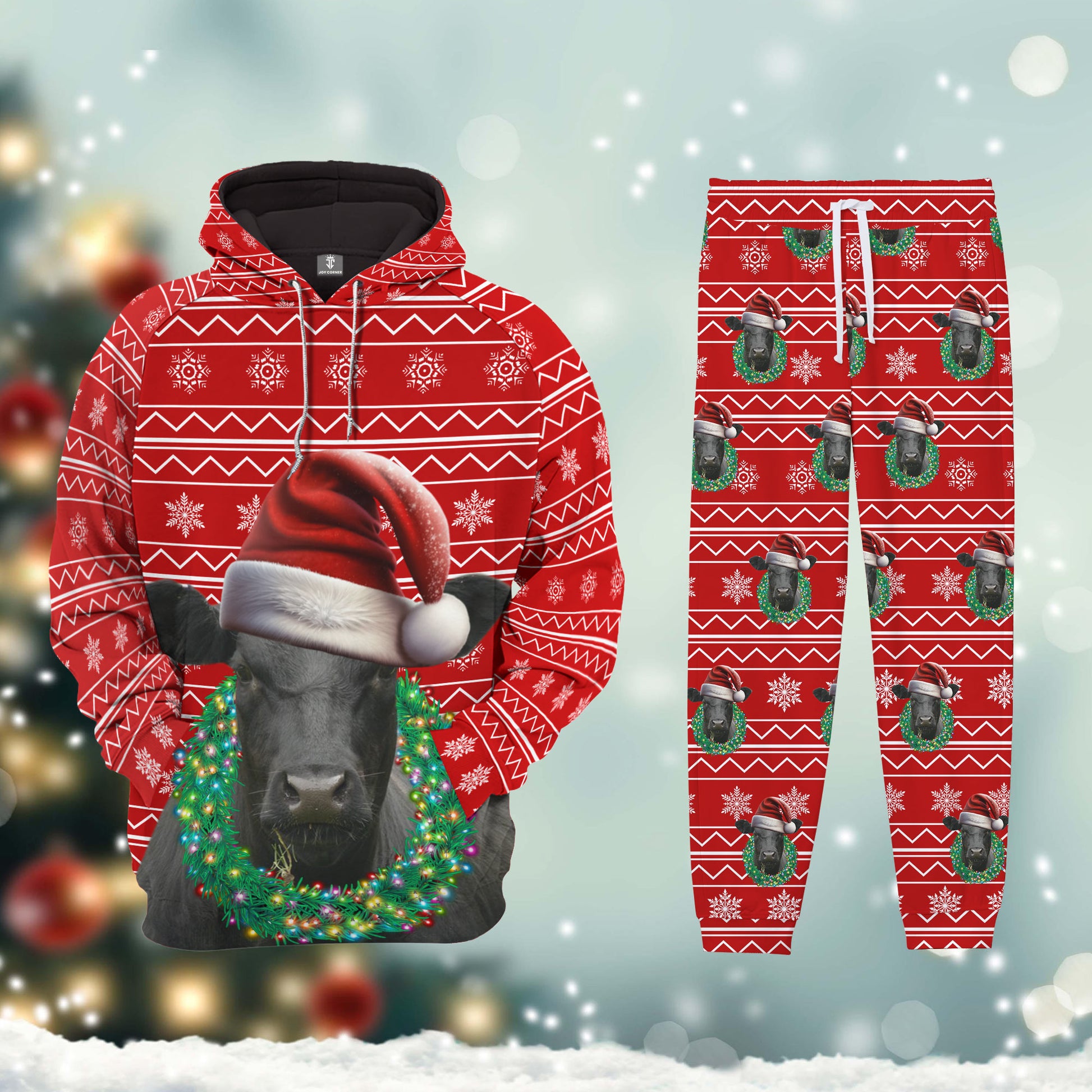 Joycorners Black Angus Custom Name Merry Christmas 3D Printed Hoodie