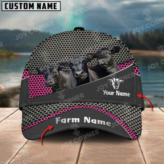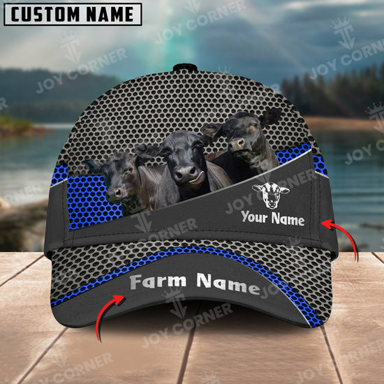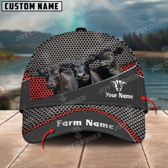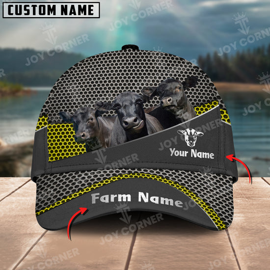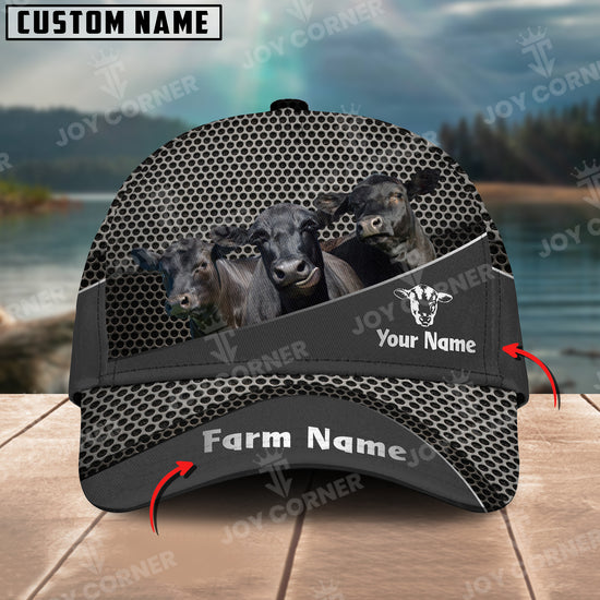 Joycorners Black Angus Customized Name And Farm Name Metal 3D Classic Cap