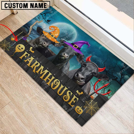 Joycorners Black Angus Cute Halloween Custom Name Doormat