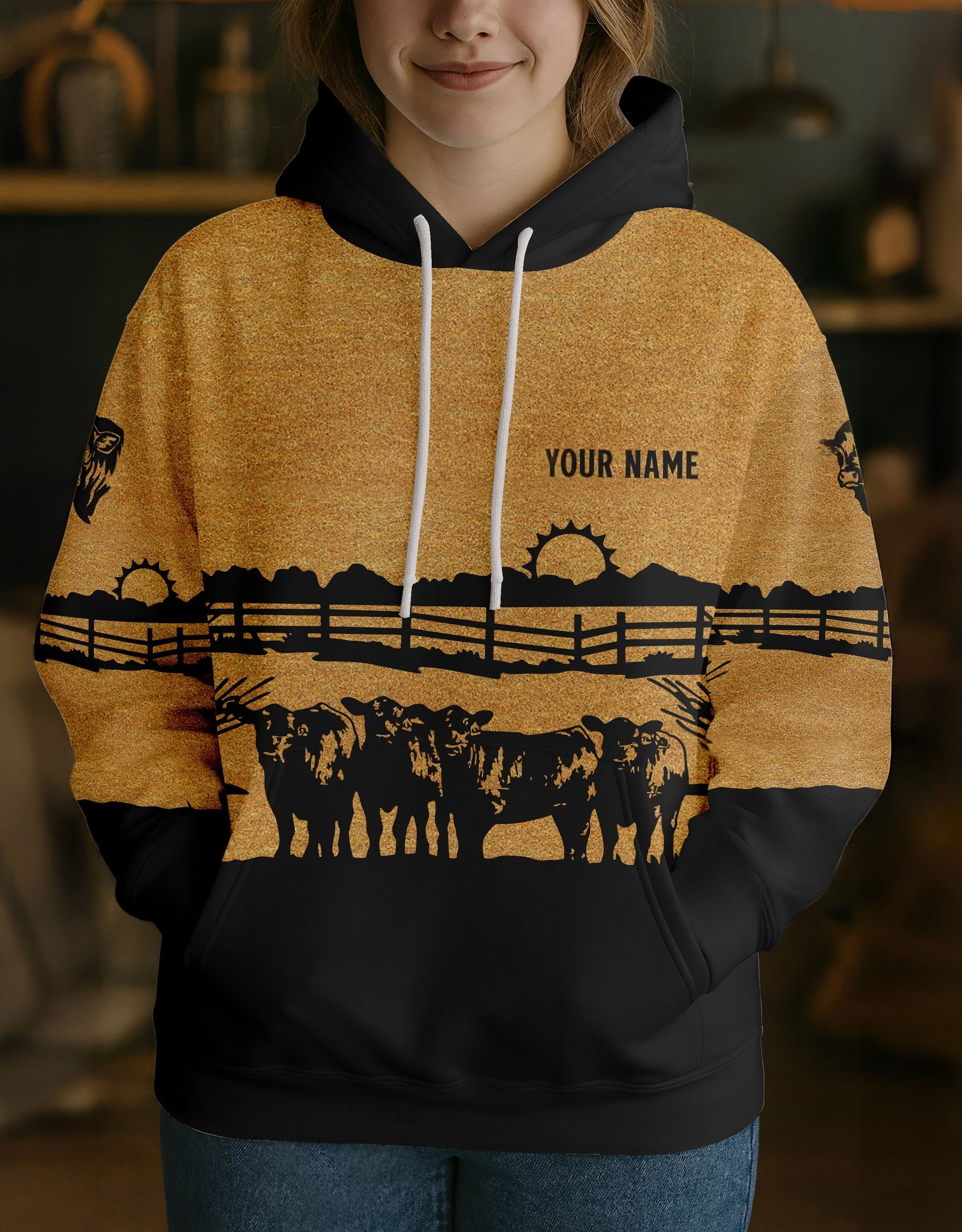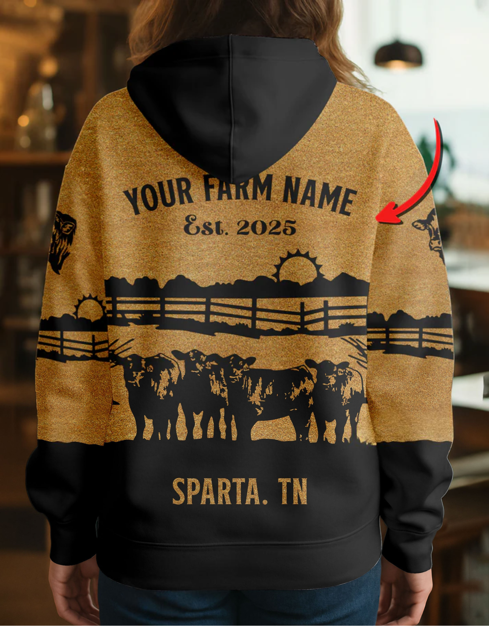 Joycorners Black Angus Farm Life Ranch Coir Pattern Personalized Name, Farm Name Unisex 3D Hoodie
