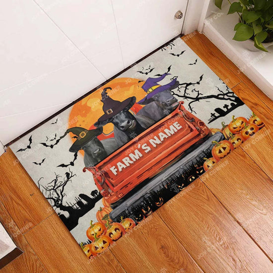 Joycorners Black Angus Halloween Truck Custom Name Doormat