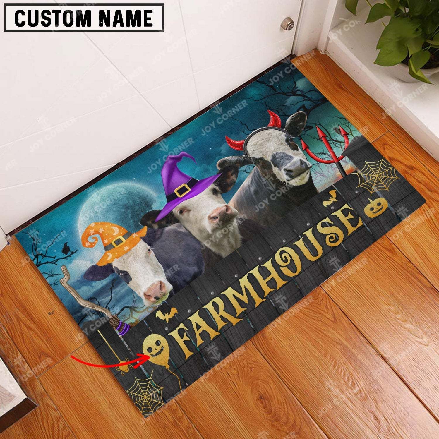 Joycorners Black Baldy Cute Halloween Custom Name Doormat