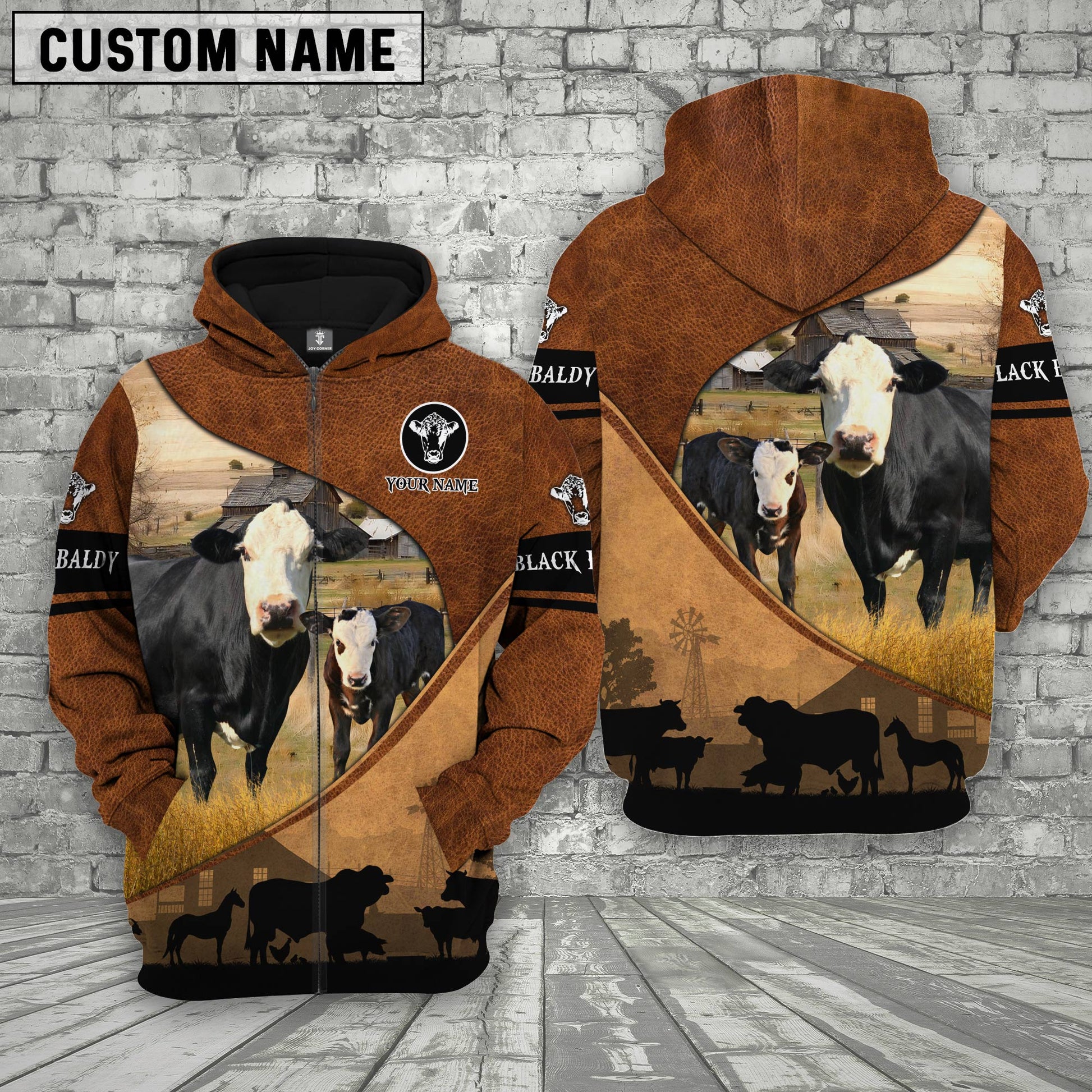 Joycorners Black Baldy Farming Dark Brown Personalized 3D Hoodie