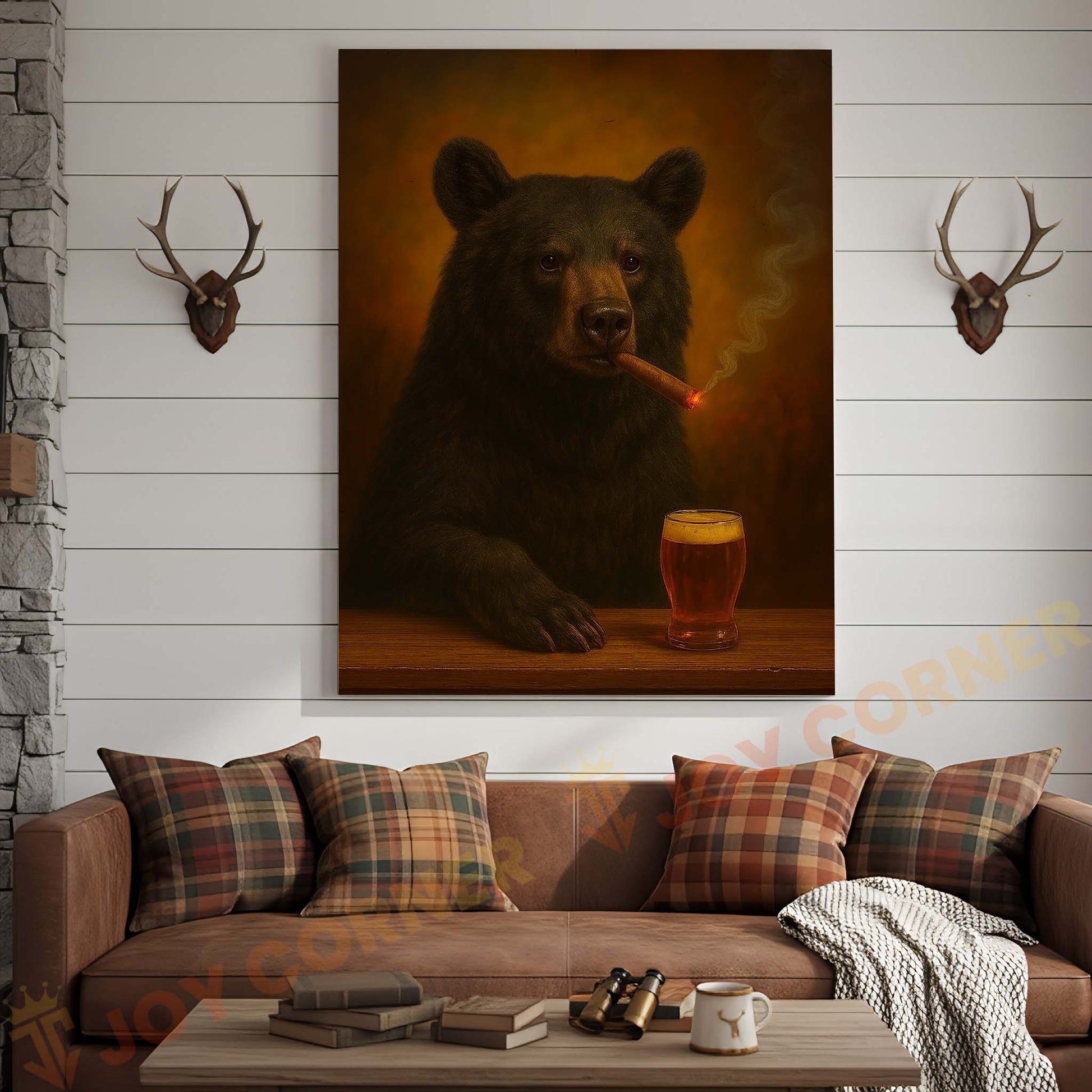 Joycorners Black Bear with Beer Glass and Smoke Effect Wrapped Canvas