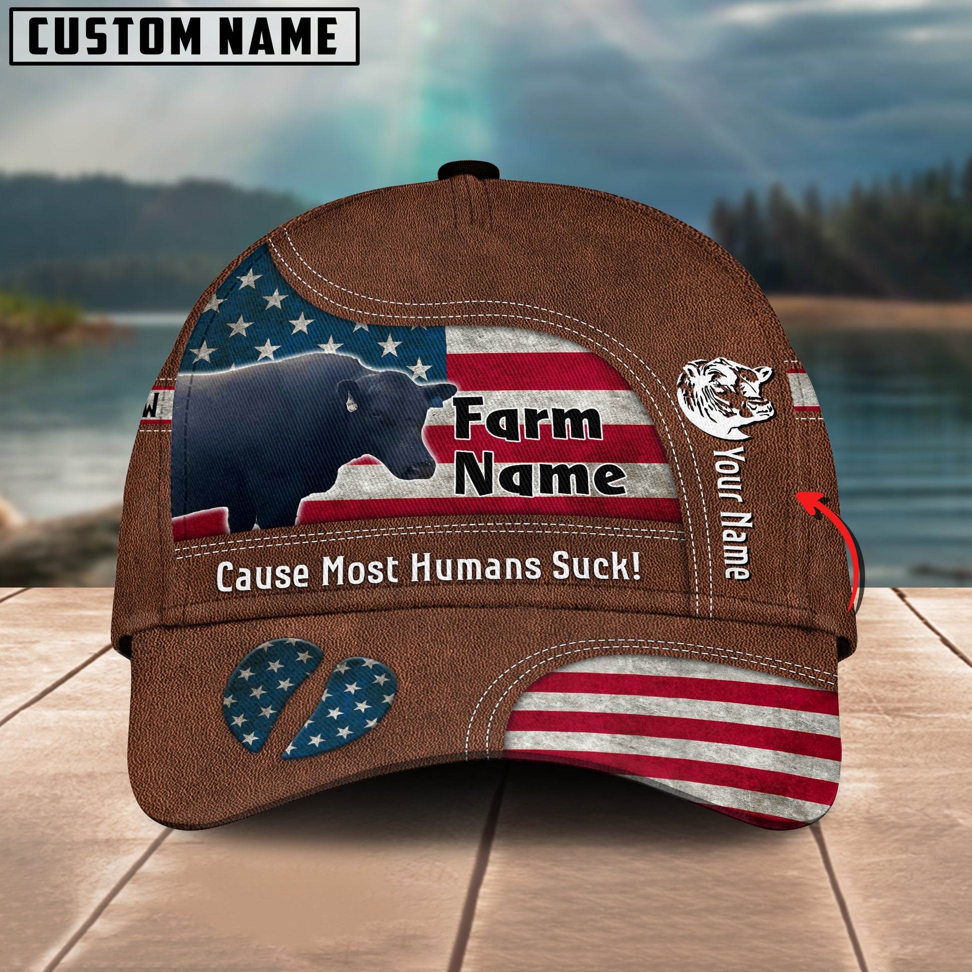 Joycorners Black Gelbvieh Bull US Flag Customized Name And Farm Name Cap