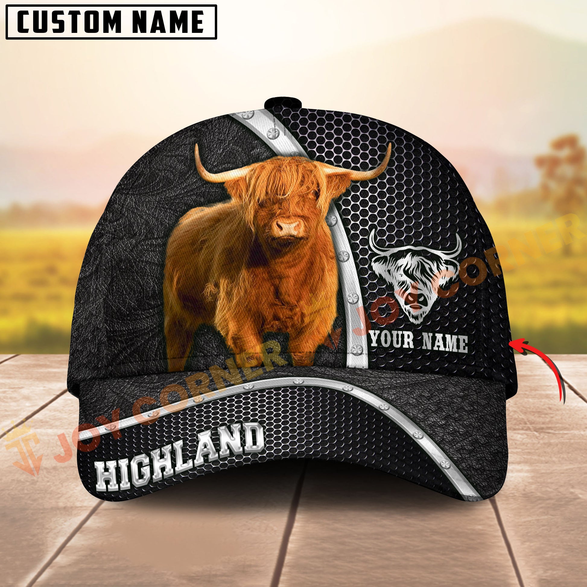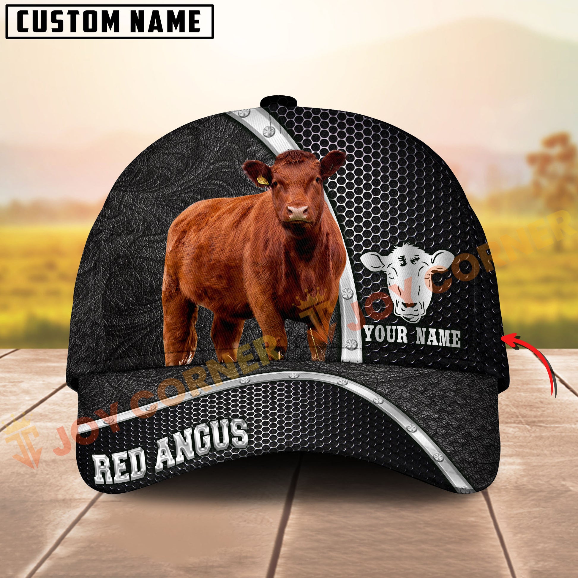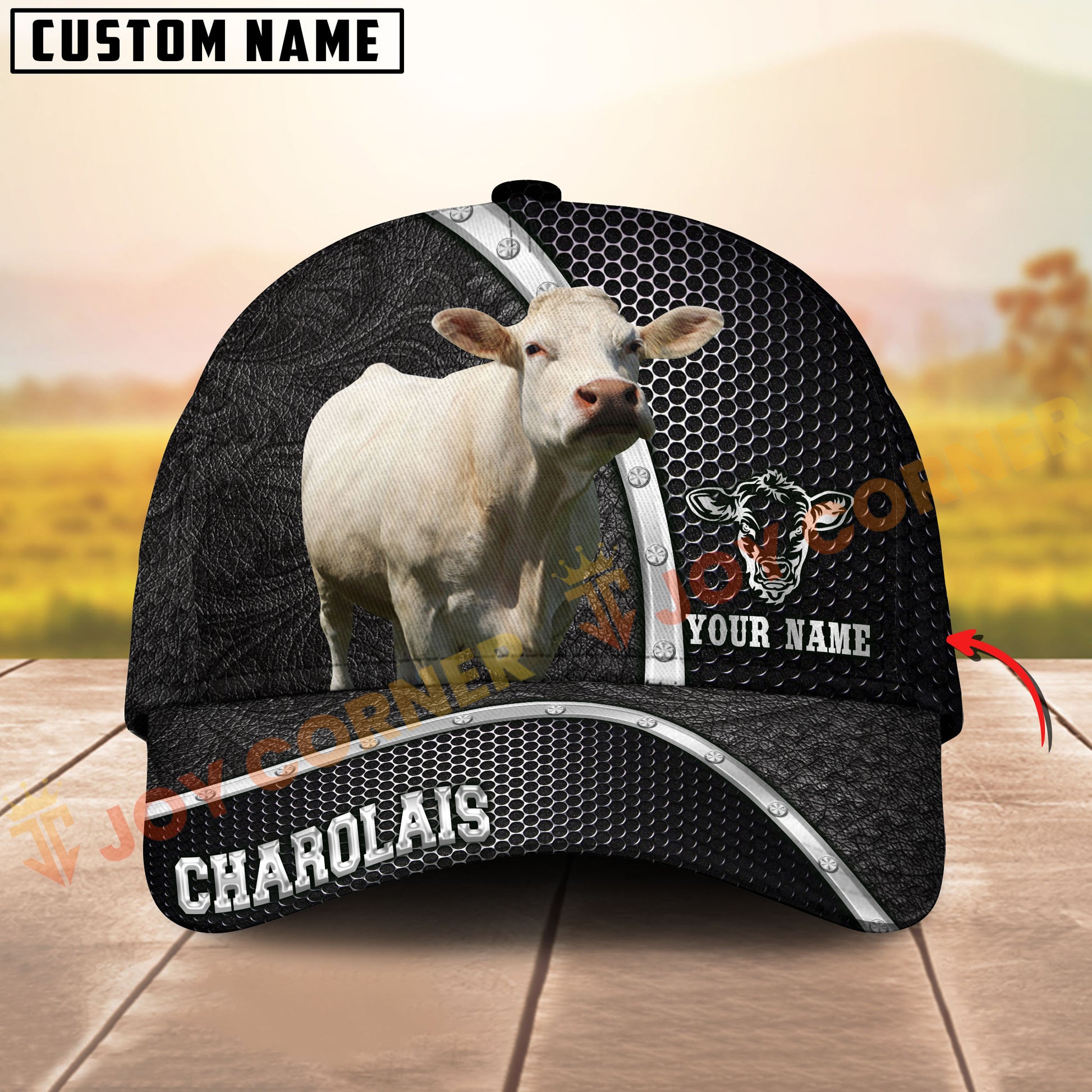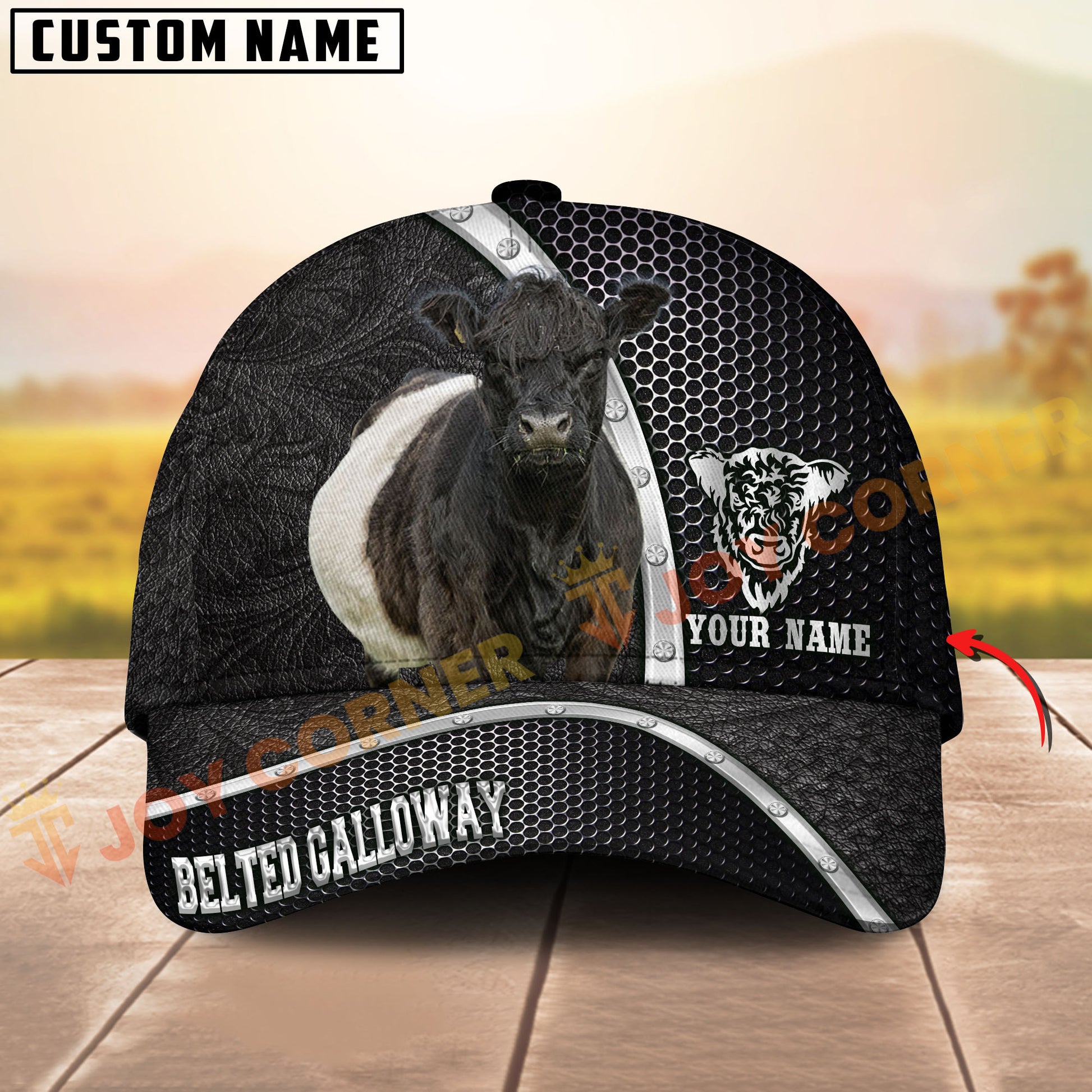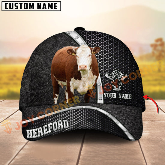 Joycorners Black & White Cow Honeycomb Texture Personalized Name 3D Cap (10 Breeds)