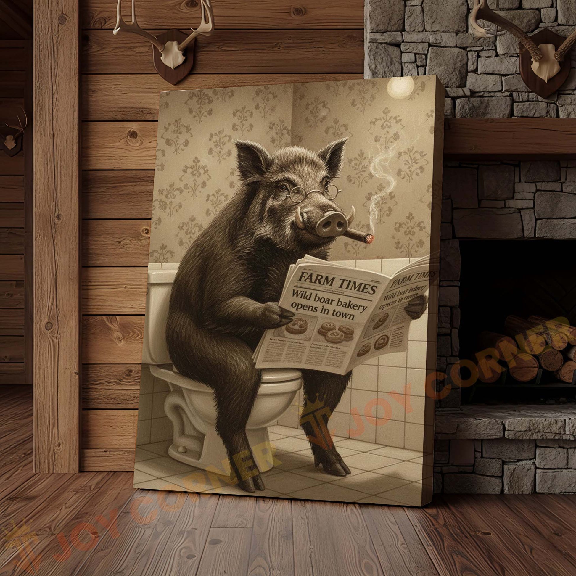 Joycorners Boar Reading Farm Times Newspaper Wrapped Canvas