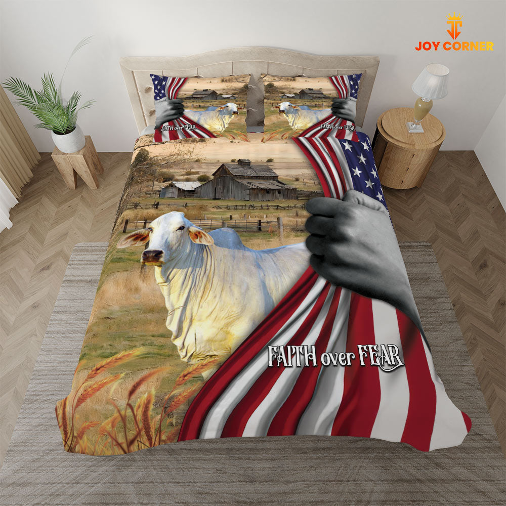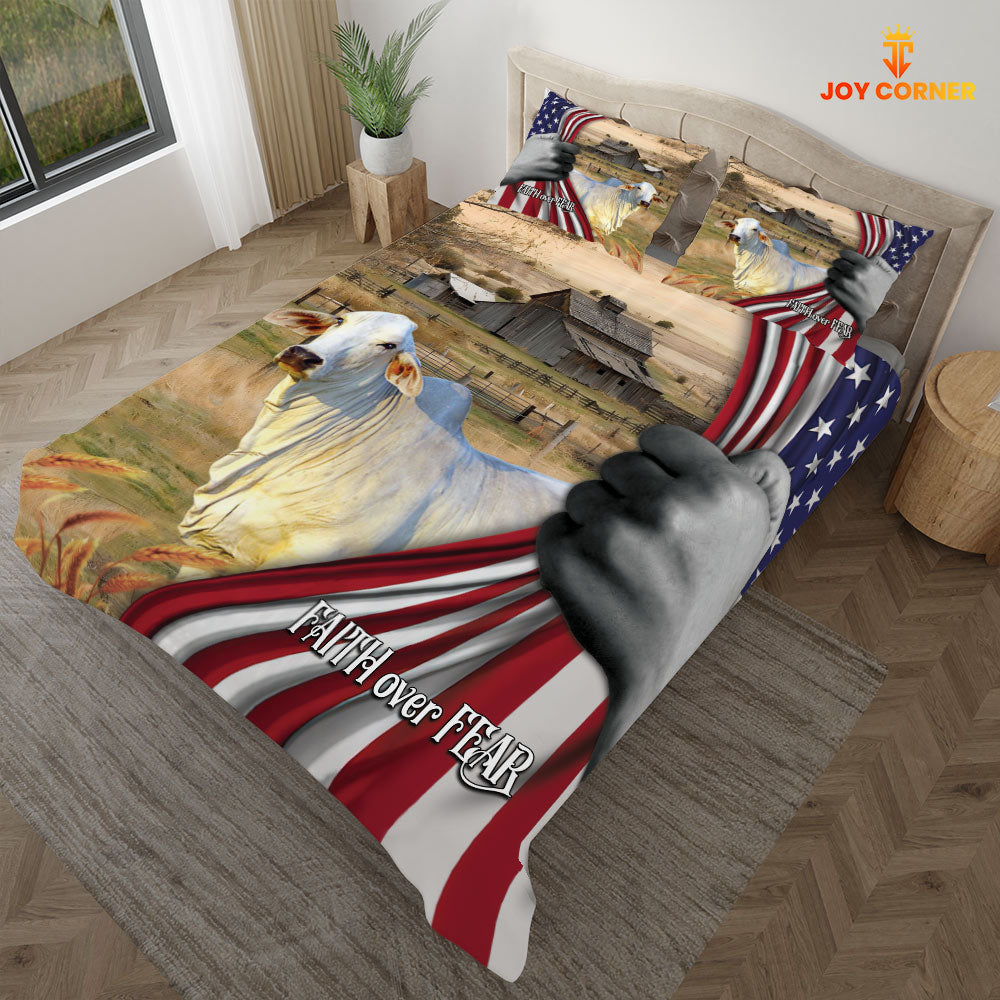 JoyCorners Brahman Cattle 3D US Flag Bedding Set