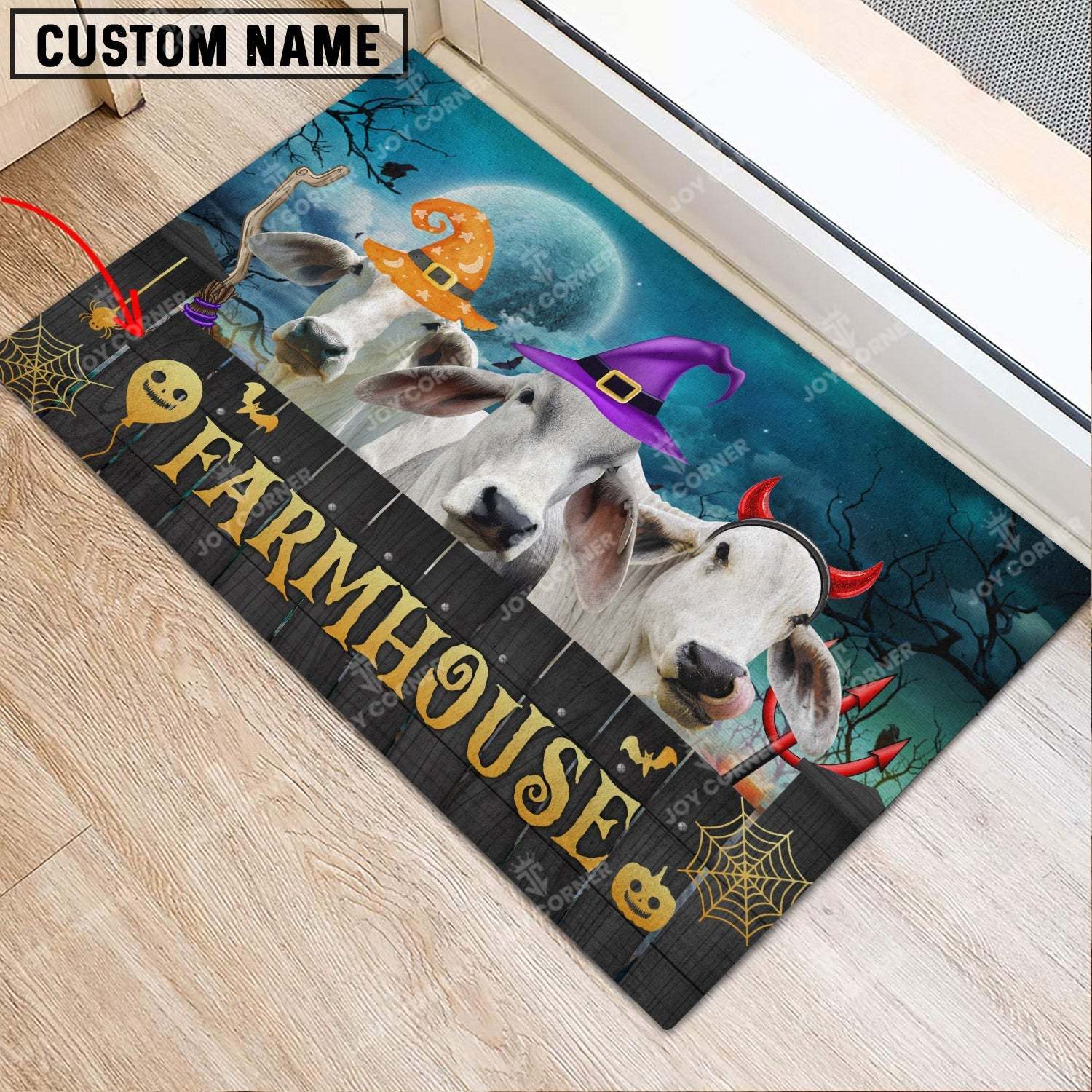 Joycorners Brahman Cattle Cute Halloween Custom Name Doormat