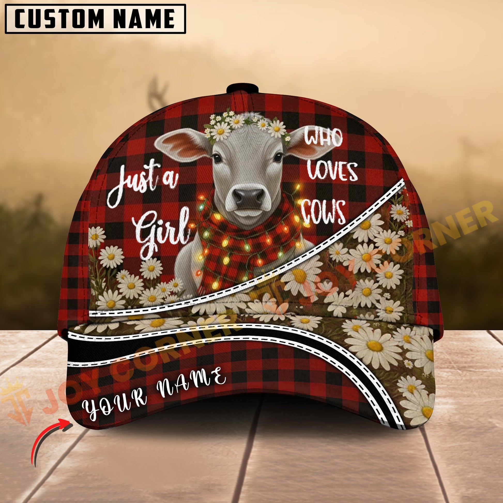 Joycorners Brahman Just a Girl Who Loves Cows Plaid Red Floral Farm Personalized Name 3D Cap