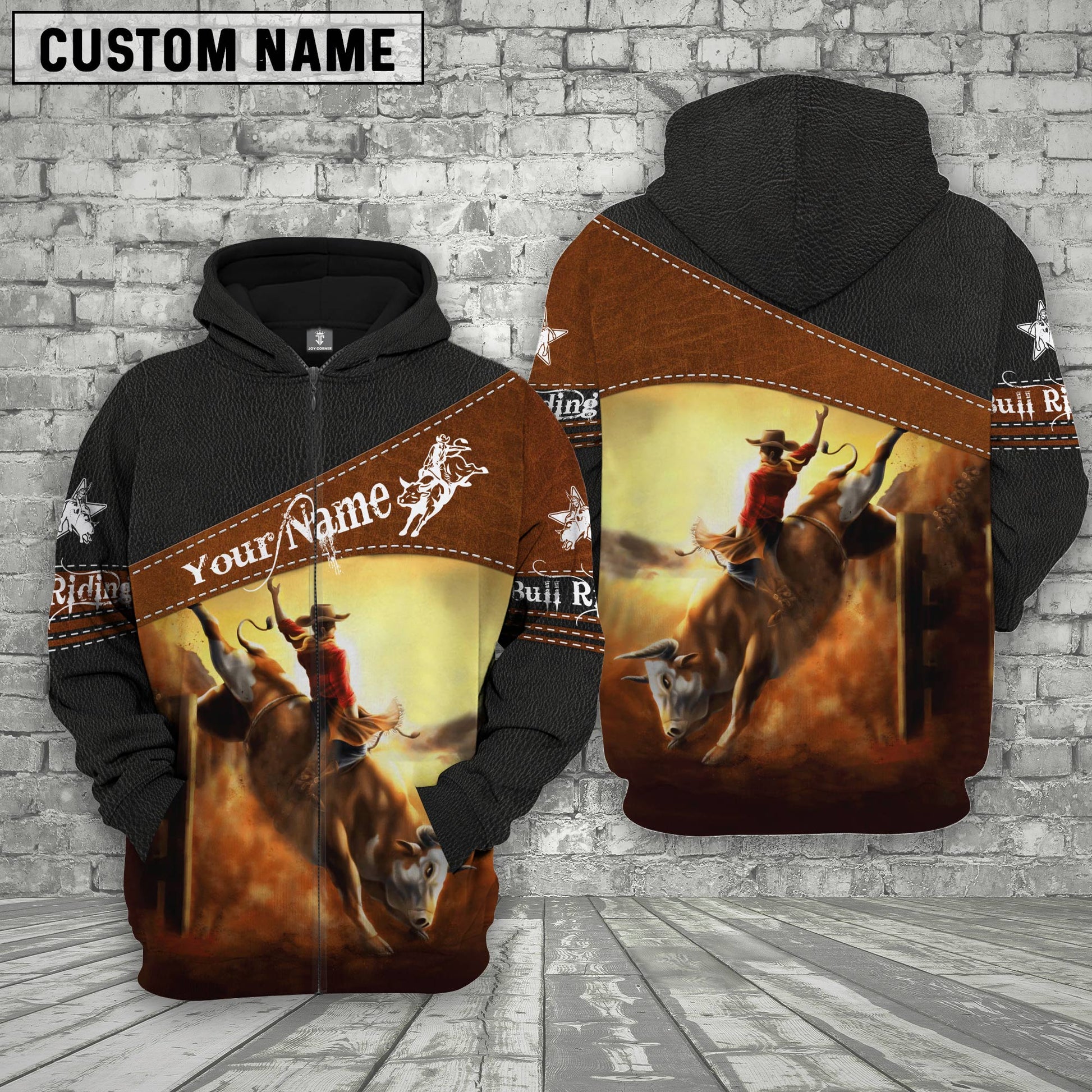 Joycorners Bull Riding Custom Name Printed 3D Black Hoodie