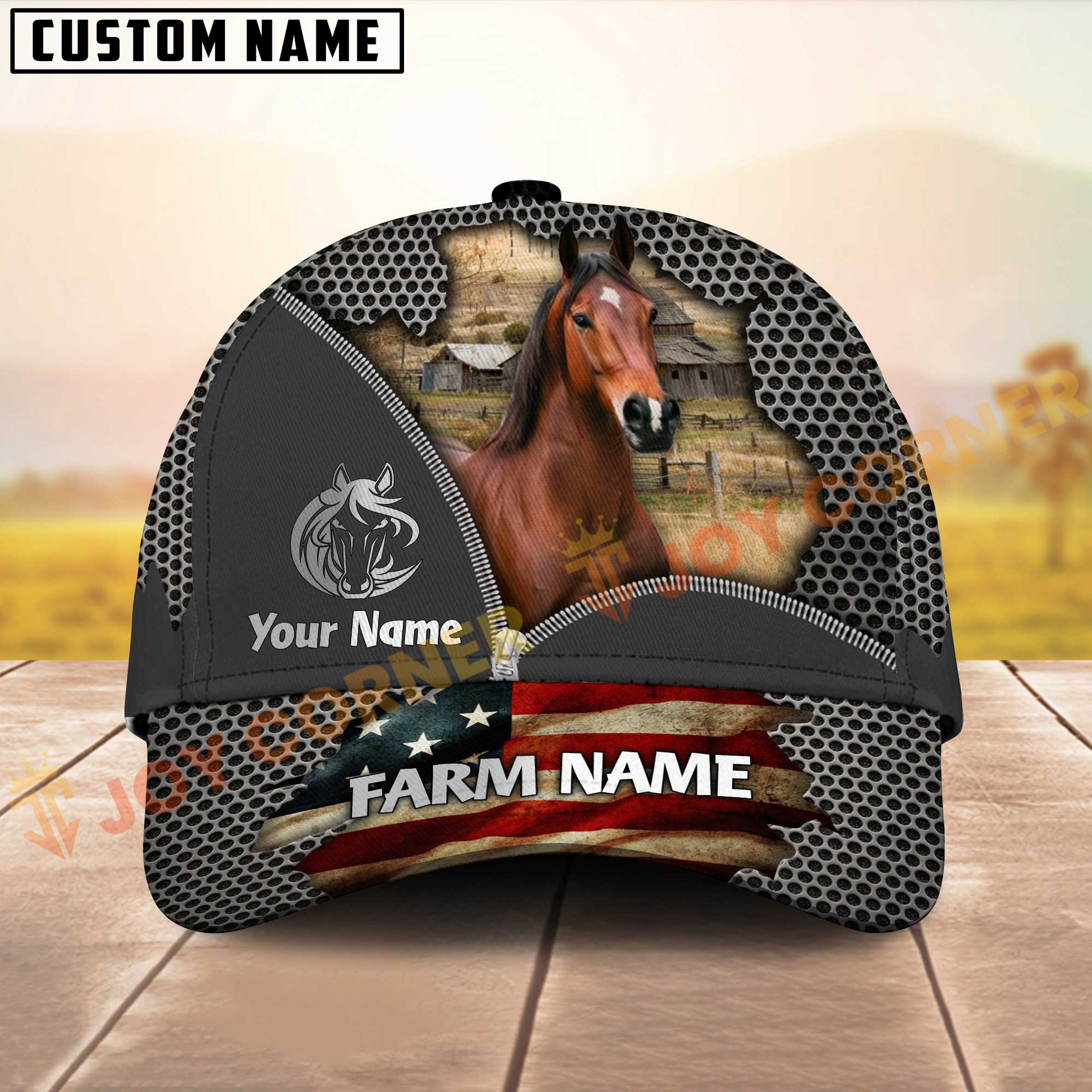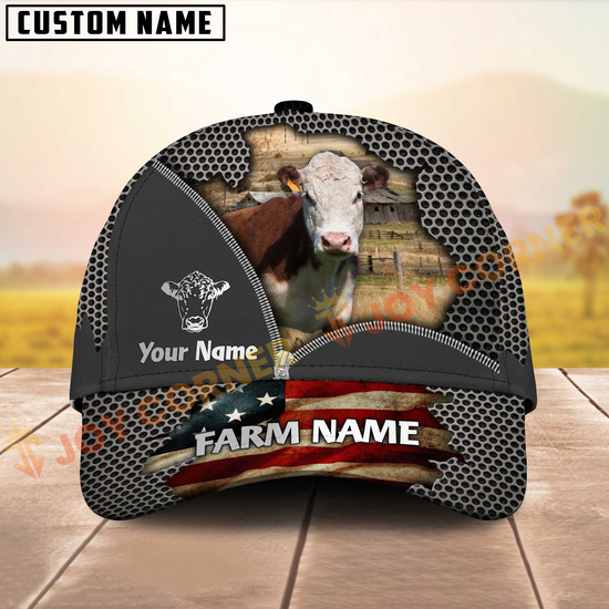 Joycorners Cattle Cow American Flag Mesh On Farm Customized Name 3D Classic Cap (8 Breeds)