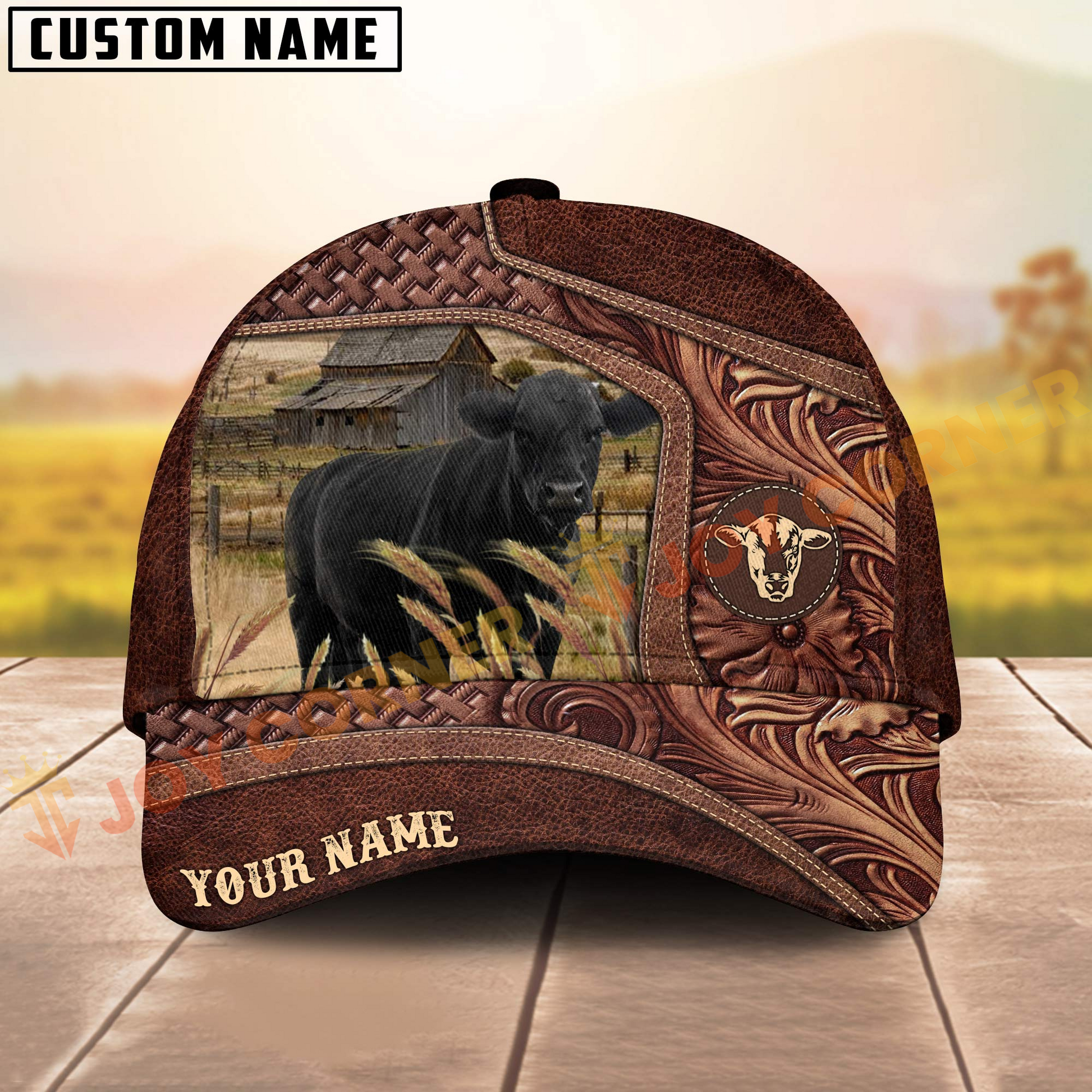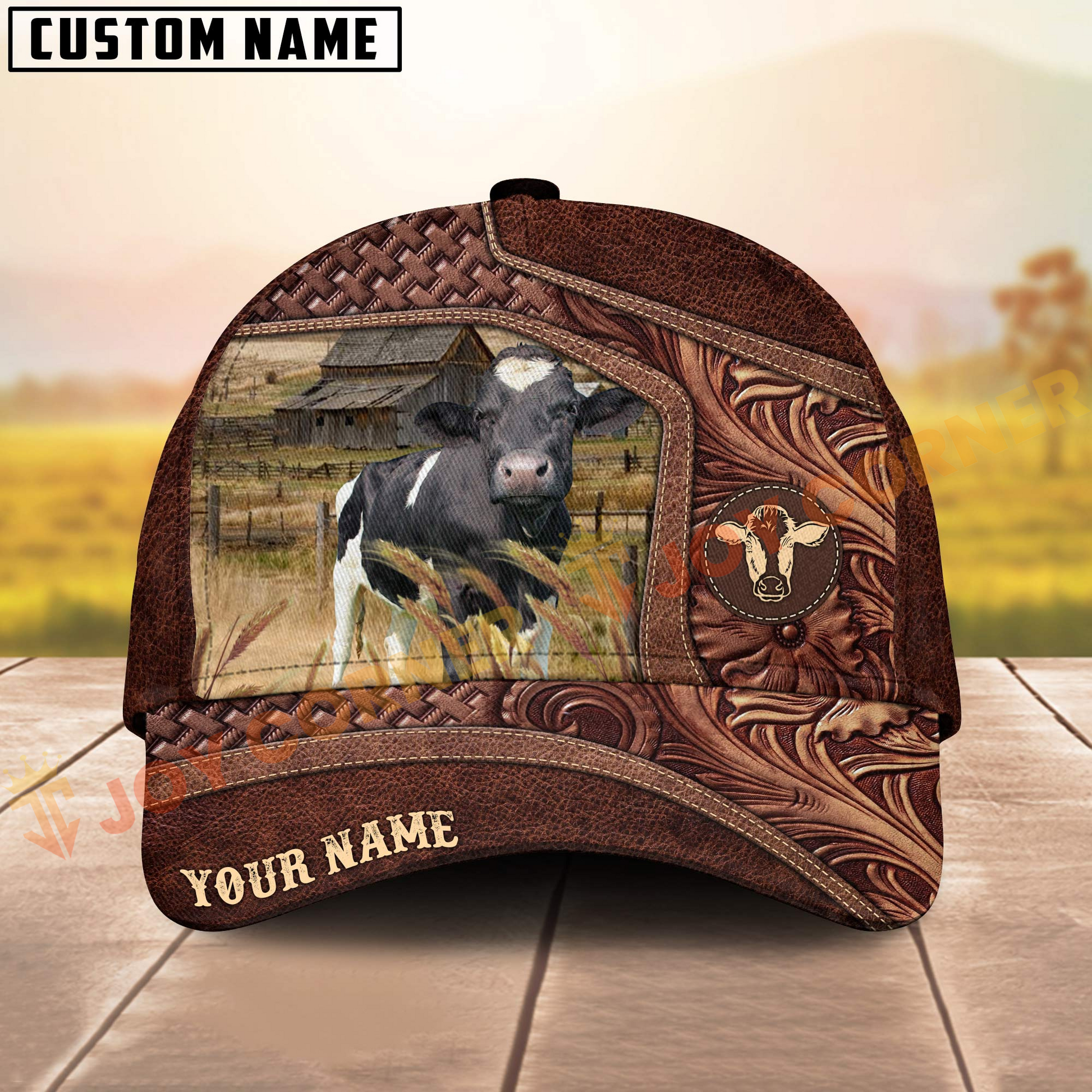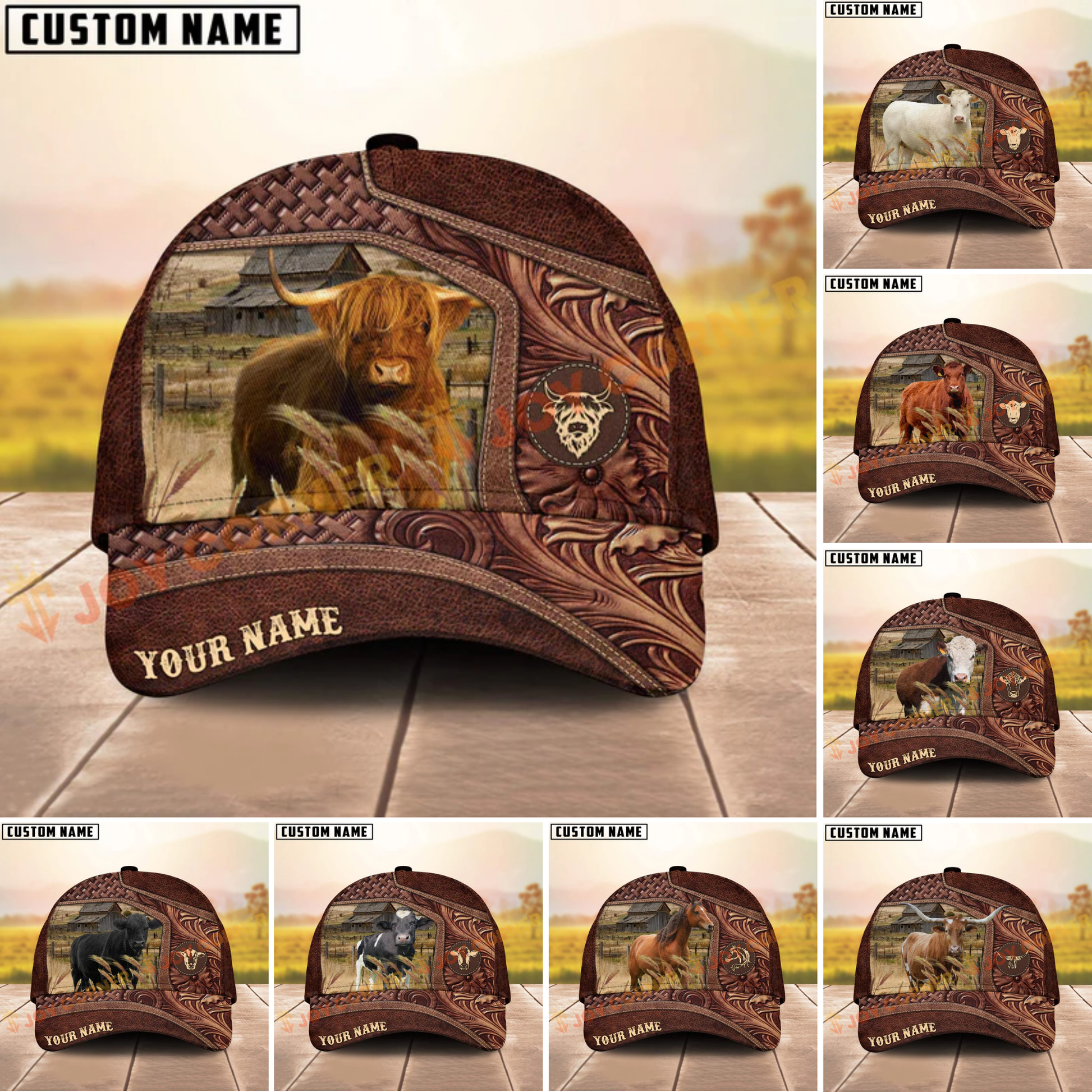 Joycorners Cattle Cow Brown Tooled Leather On Farm Customized Name 3D Classic Cap (8 Breeds)