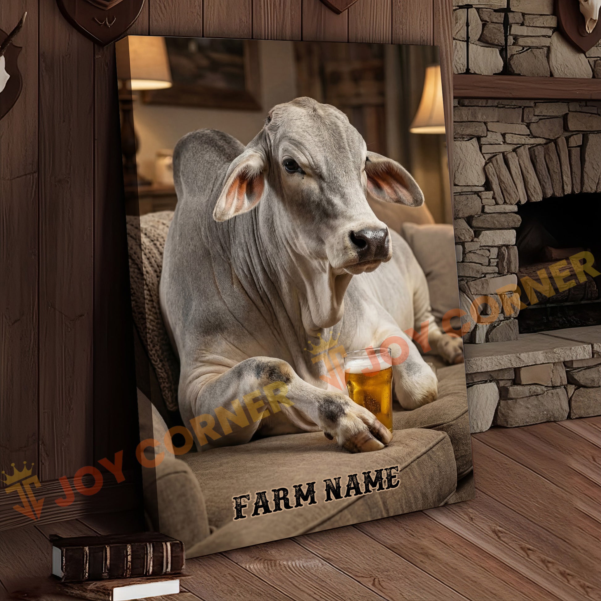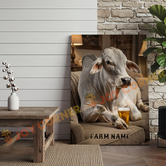 Joycorners Cattle Cow Cozy Farmhouse Brahman Cow Relaxing On Sofa Personalized Name Canvas