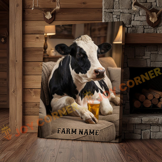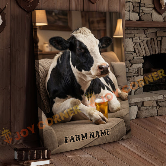 Joycorners Cattle Cow Cozy Farmhouse Holstein Cow Relaxing On Sofa Personalized Name Canvas