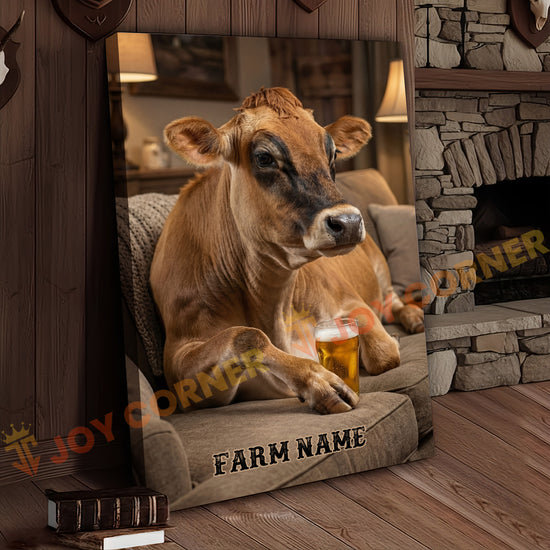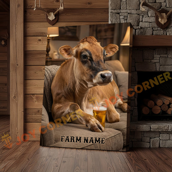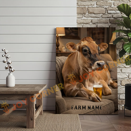 Joycorners Cattle Cow Cozy Farmhouse Jersey Cow Relaxing On Sofa Personalized Name Canvas