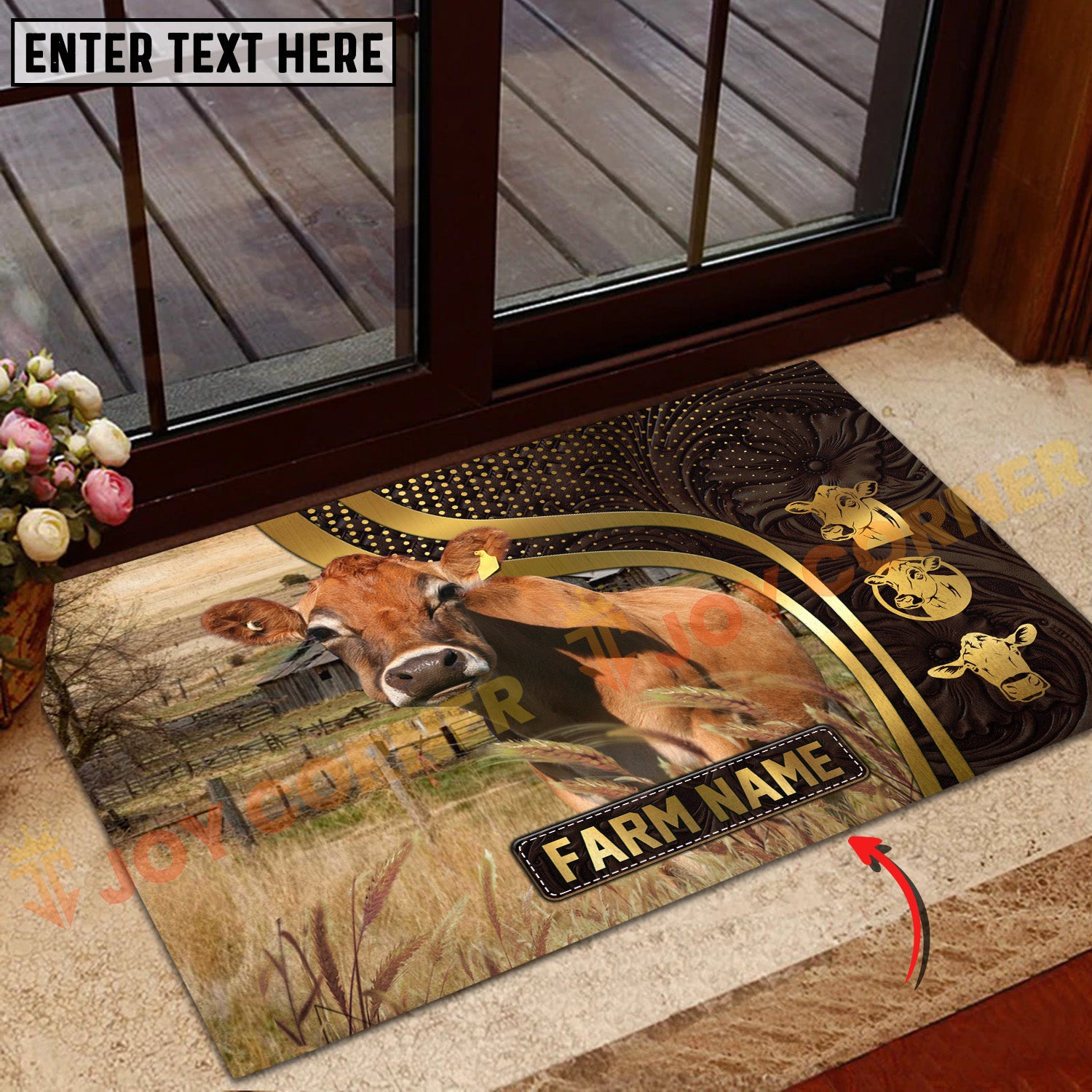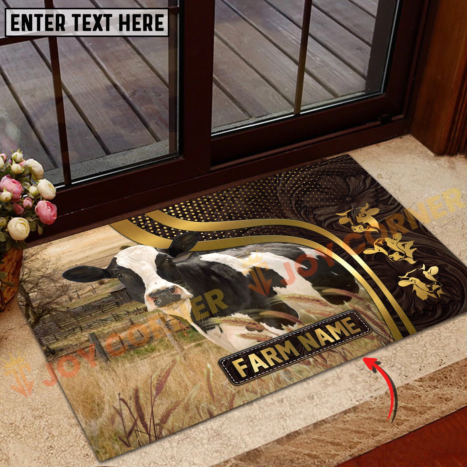 Joycorners Cattle Cow Farm Field Golden Curve Pattern Personalized Name 3D Doormat (10 Breeds)