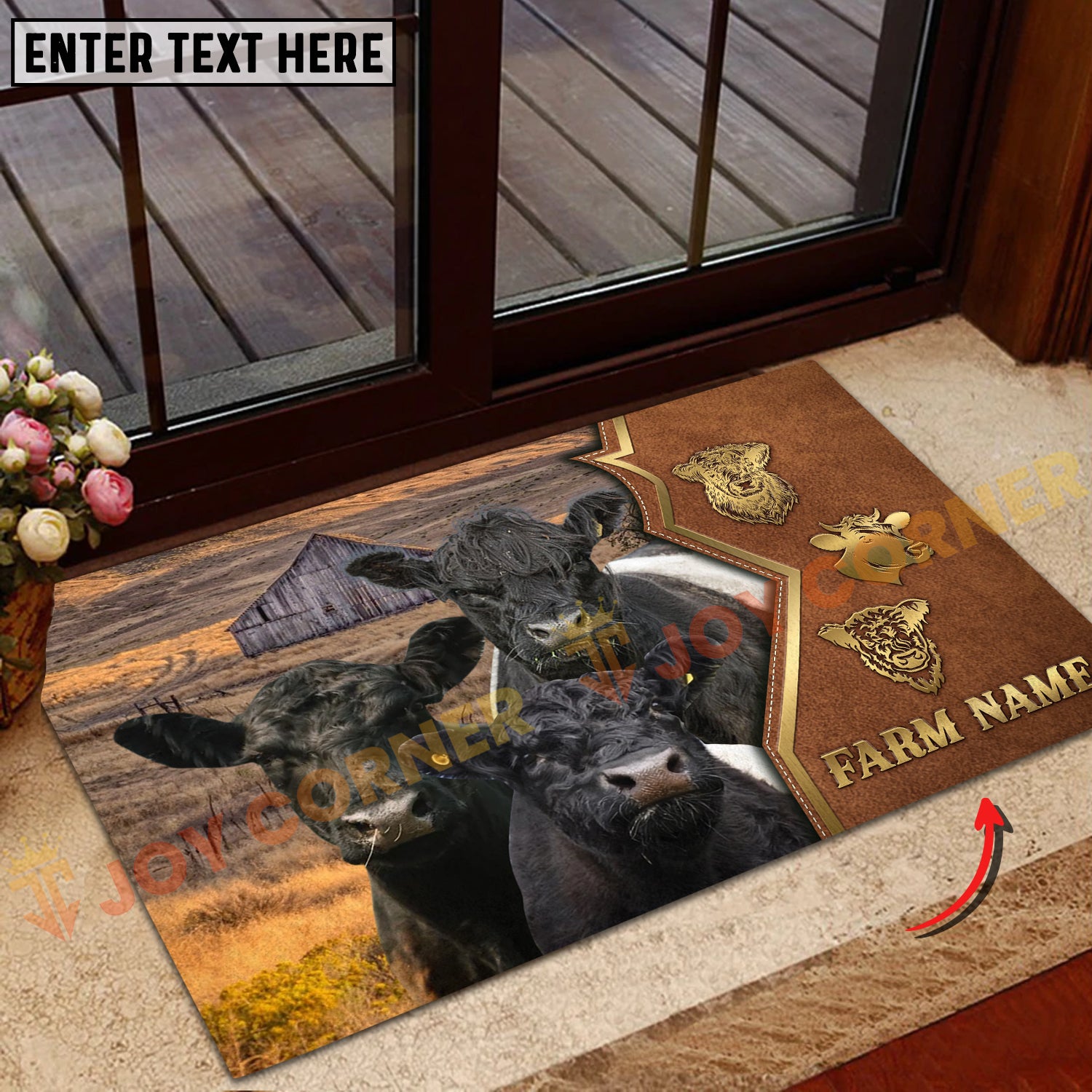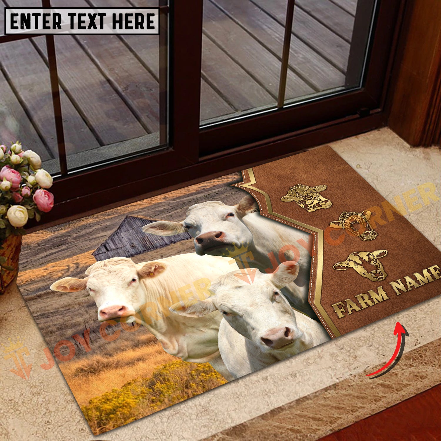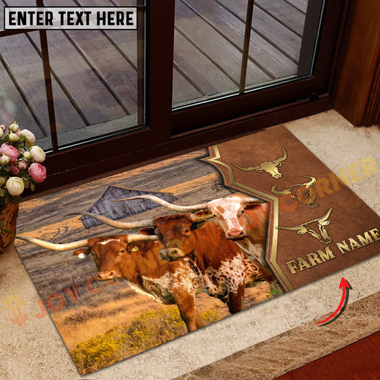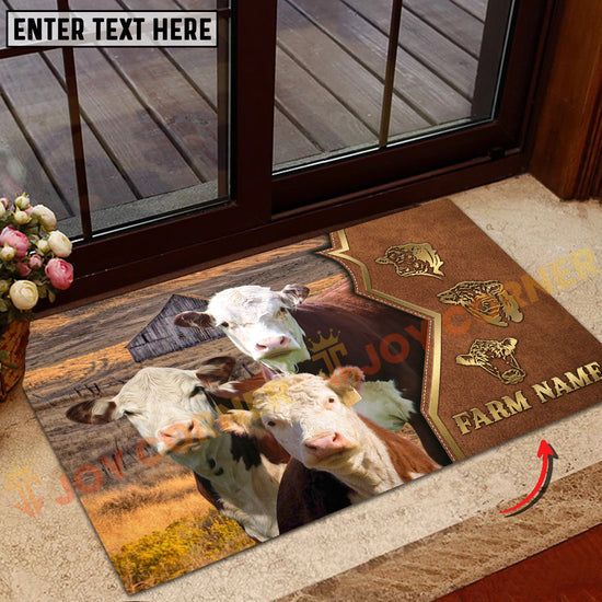 Joycorners Cattle Cow Farm Landscape Leather Badge Pattern Personalized Name 3D Doormat (10 Breeds)