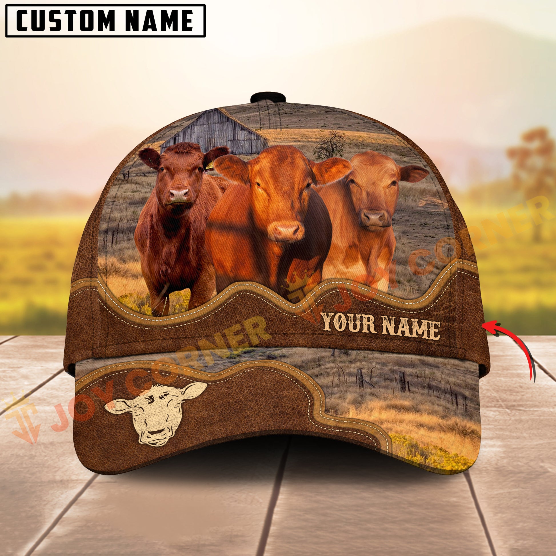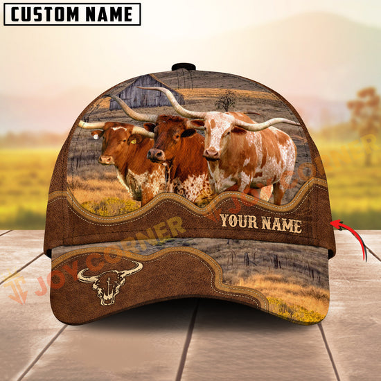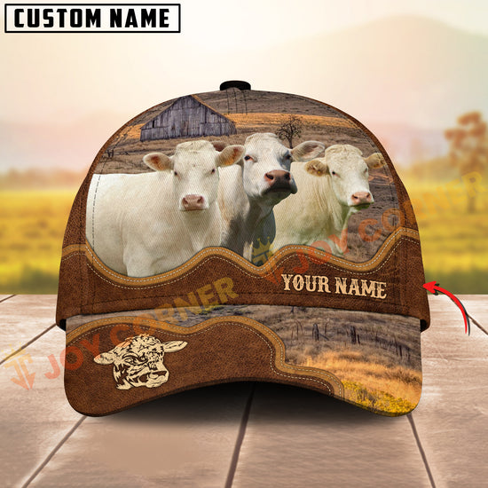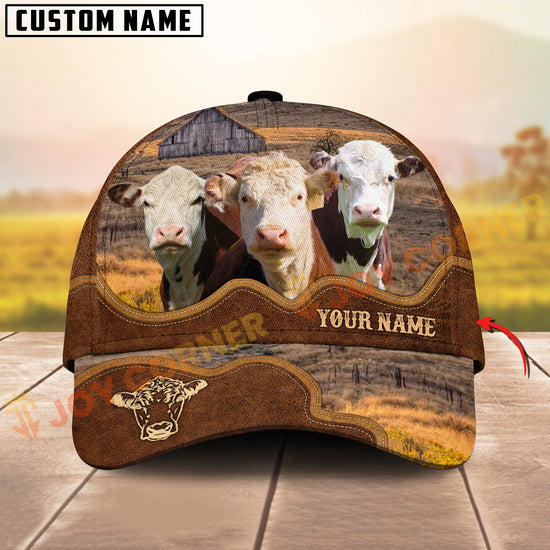 Joycorners Cattle Cow Farm Landscape Leather Curve Pattern Personalized Name 3D Cap (6 Breeds)